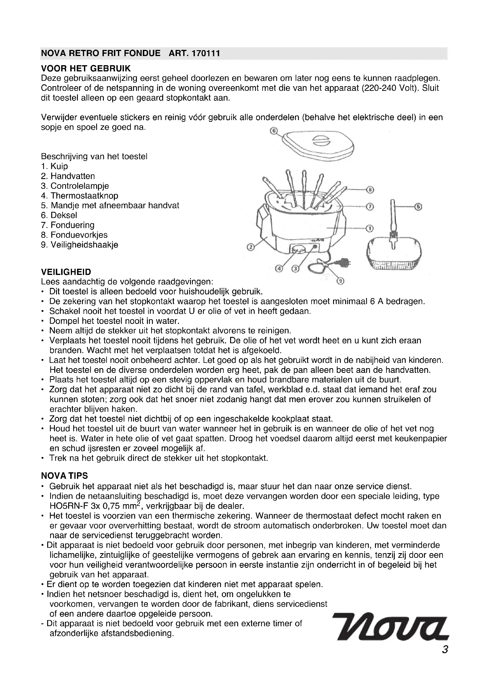 170111 - Friteuse NOVA - Gratis gebruiksaanwijzing en handleiding