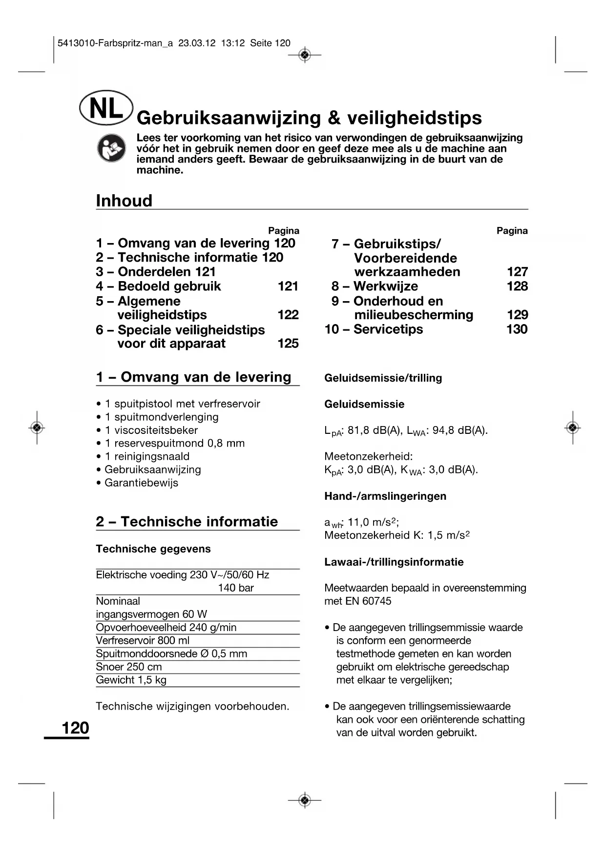 | 1 – Omvang van de levering | 120 | 7 – Gebruikstips/ | |