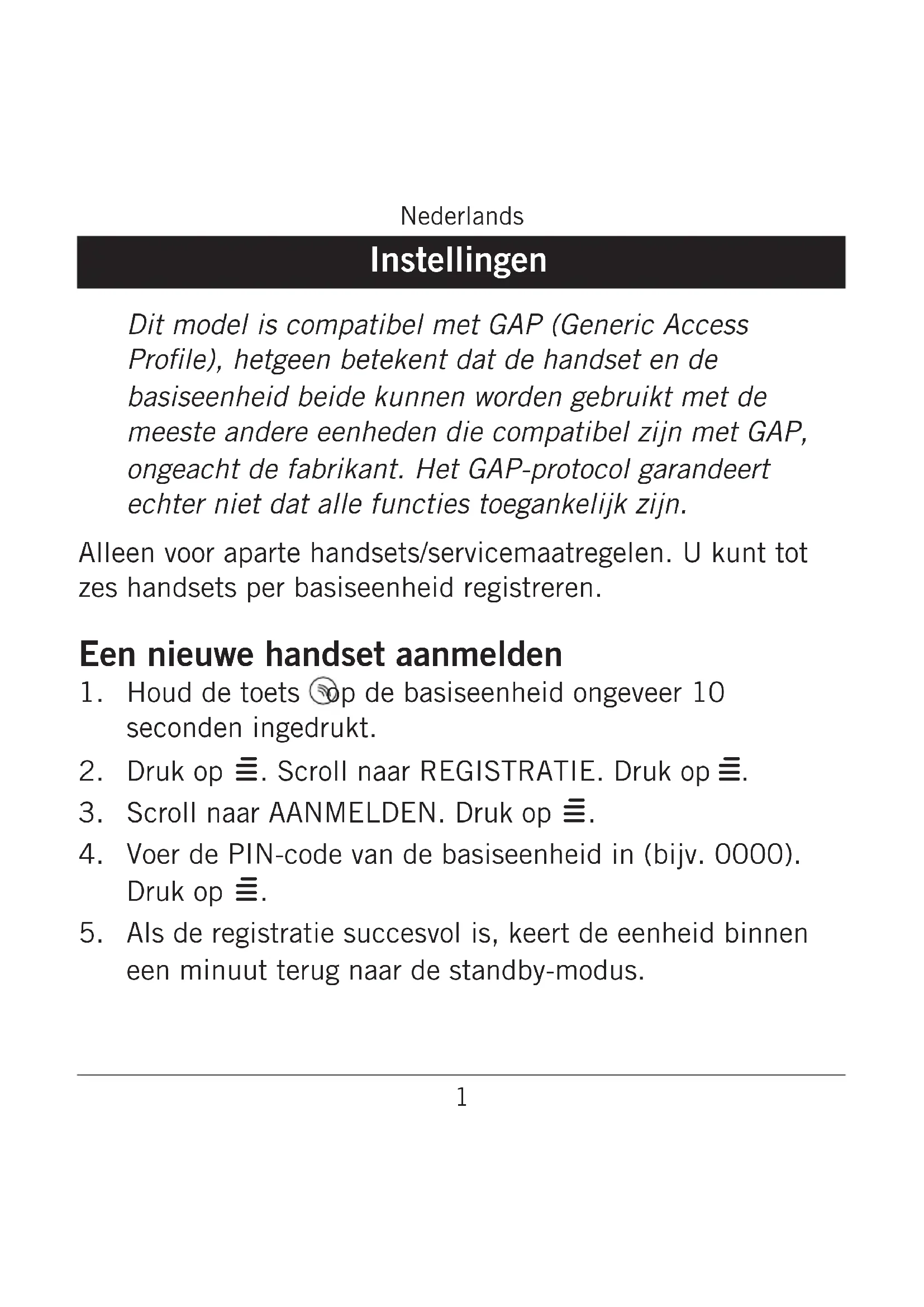 Voer de PIN-code van de basiseenheid in (bijv. 0000). Druk op