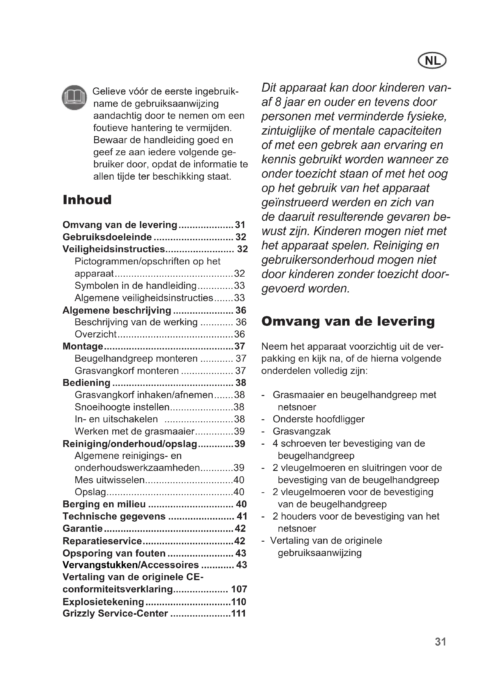 Omvang van de levering 31
