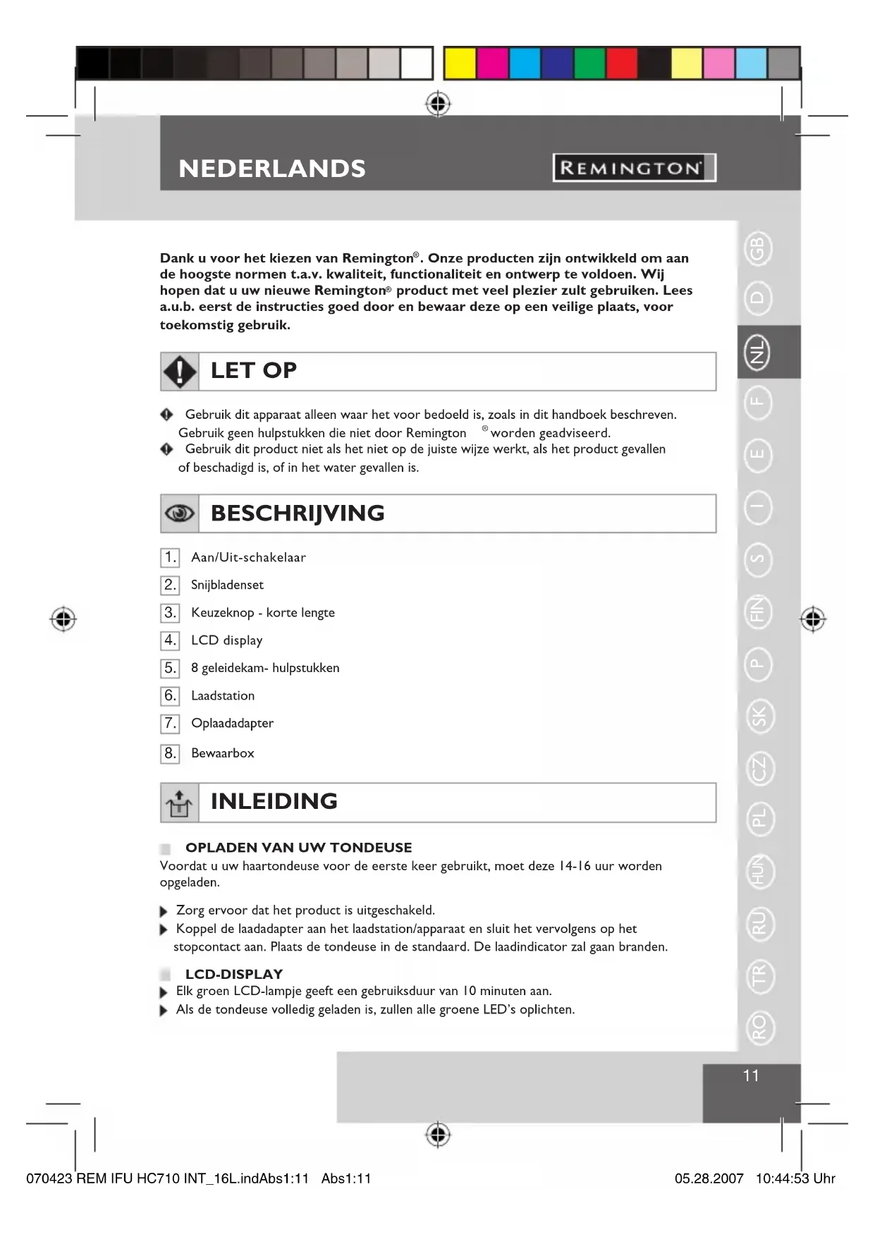 GEBRUIKSAANWIJZING HC710 REMINGTON