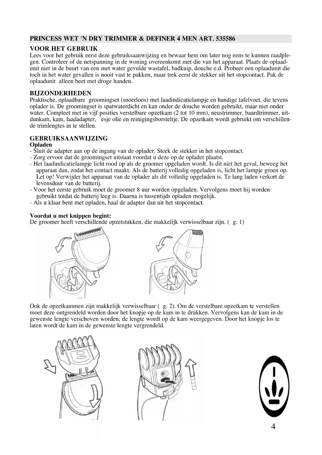 GEBRUIKSAANWIJZING 4 Men Wet n Dry Trimmer & Definer 535586 PRINCESS