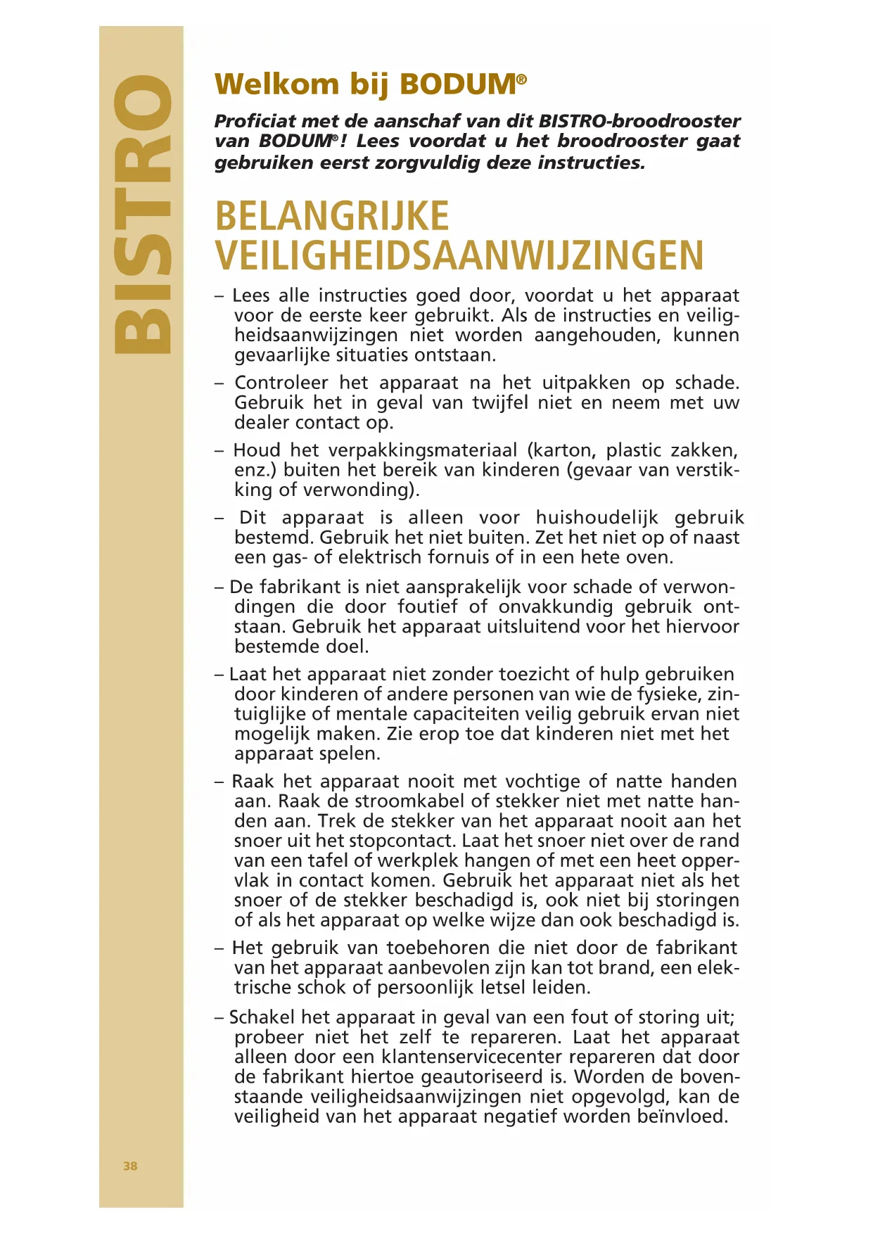 Proficiat met de aanschaf van dit BISTRO-broodrooster van BODUM