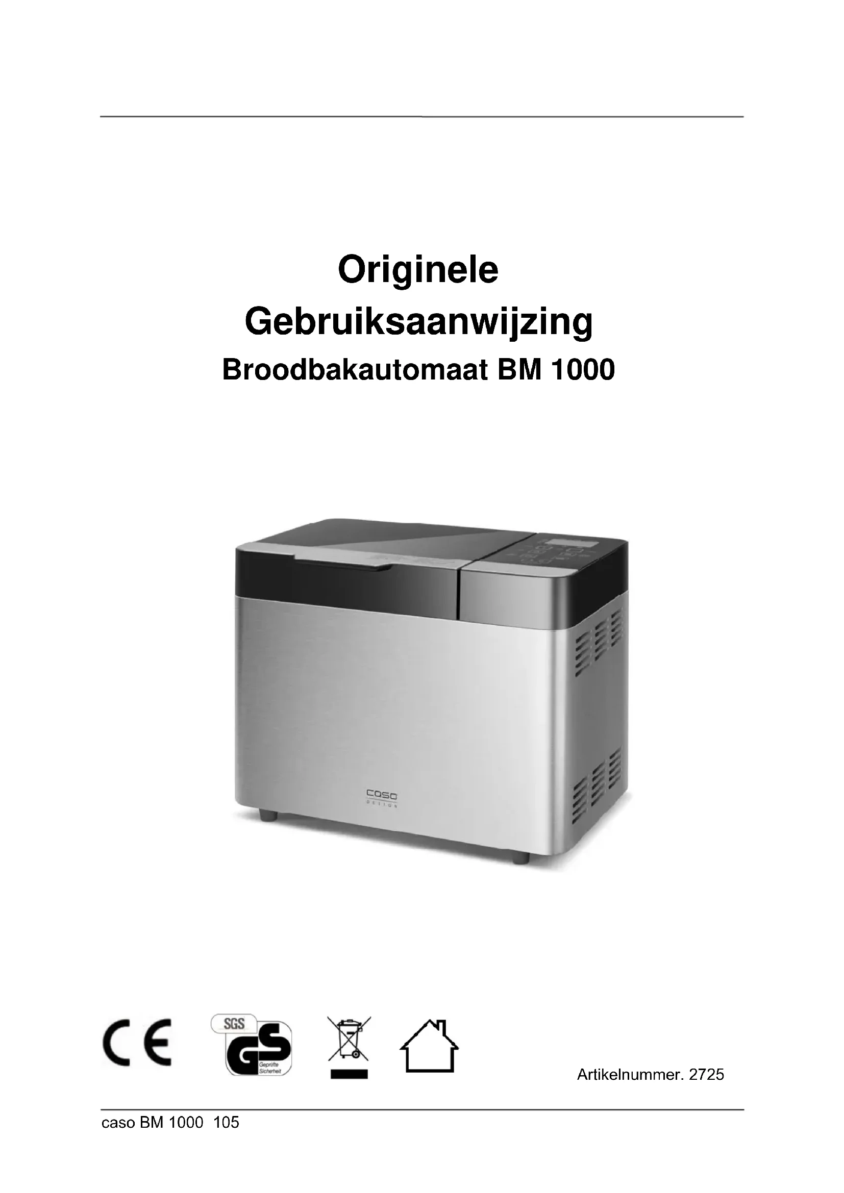 BM1000 - Broodbakmachine CASO - Gratis gebruiksaanwijzing en handleiding