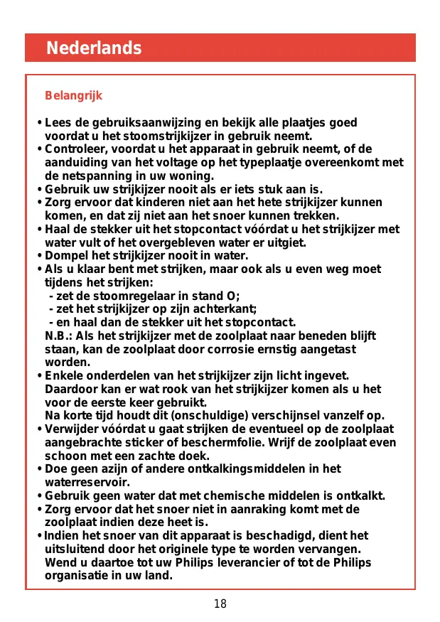 - Lees de gebruiksaanwijzing en bekijk alle plaatjes goed voordat u het stoomstrijkijzer in gebruik neemt.