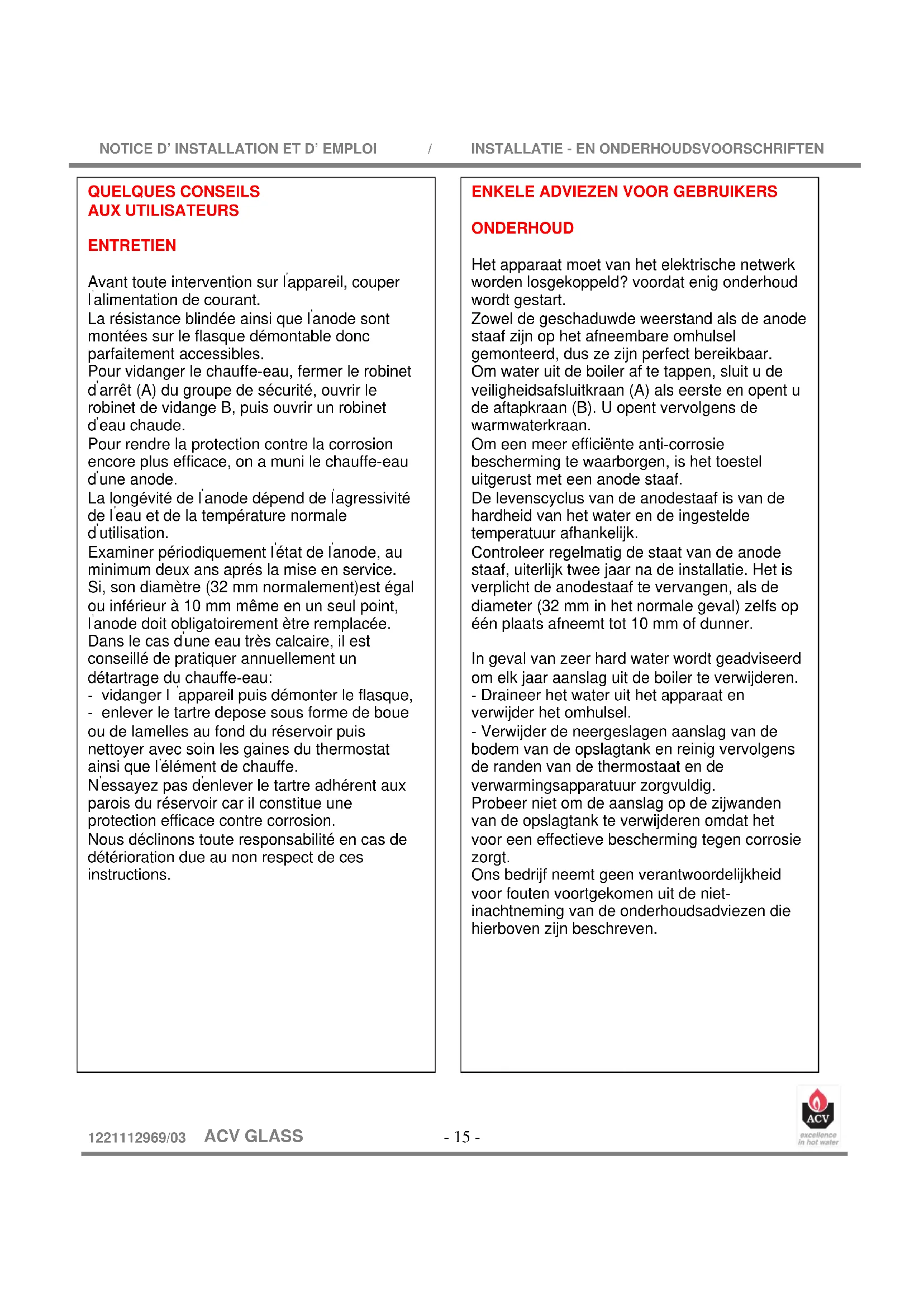 Download de handleiding voor uw Ketel in PDF-formaat gratis! Vind uw handleiding BL 200 - ACV en neem uw elektronisch apparaat weer in handen. Op deze pagina staan alle documenten die nodig zijn voor het gebruik van uw apparaat. BL 200 van het merk ACV.