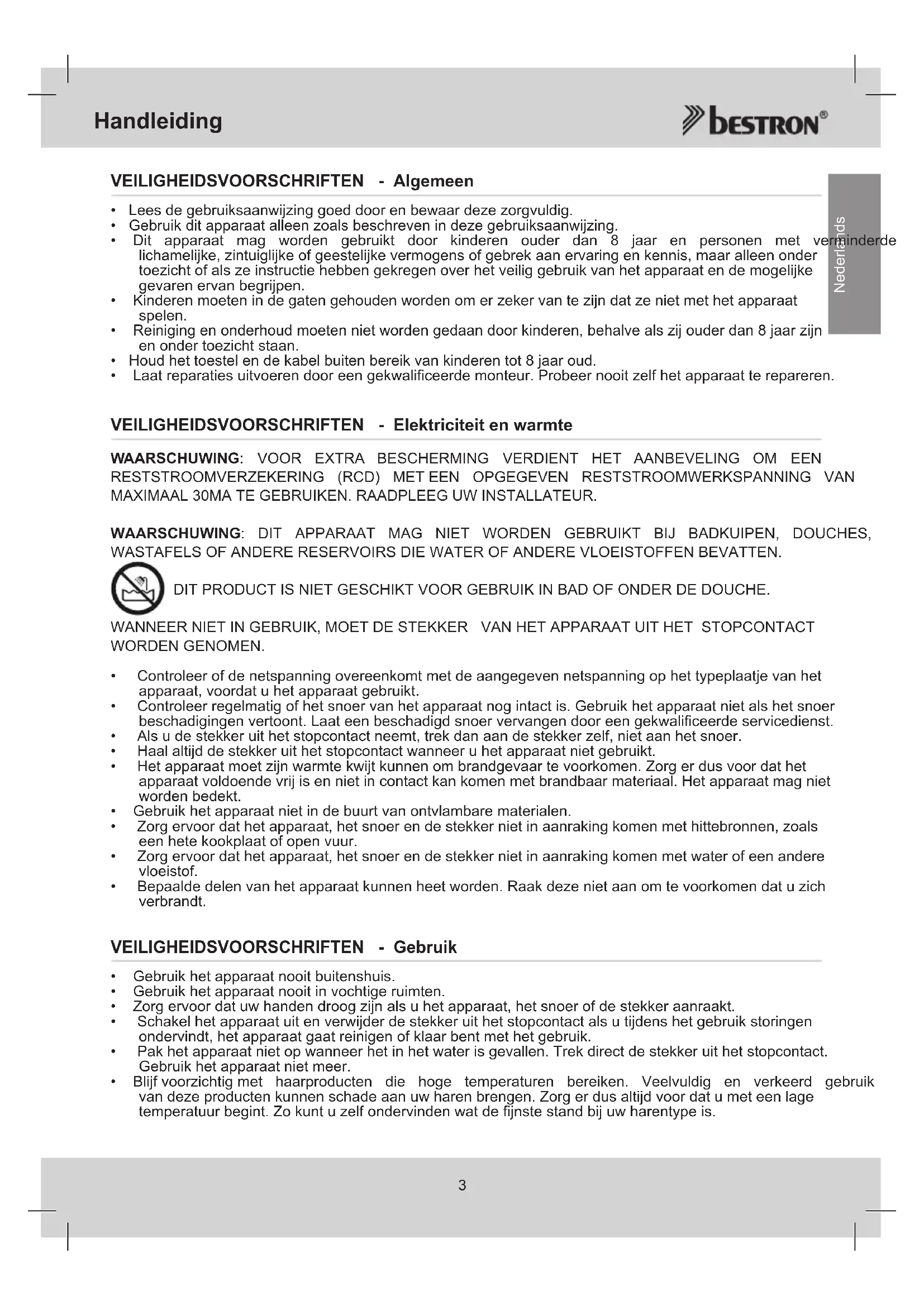 GEBRUIKSAANWIJZING AHD200P BESTRON