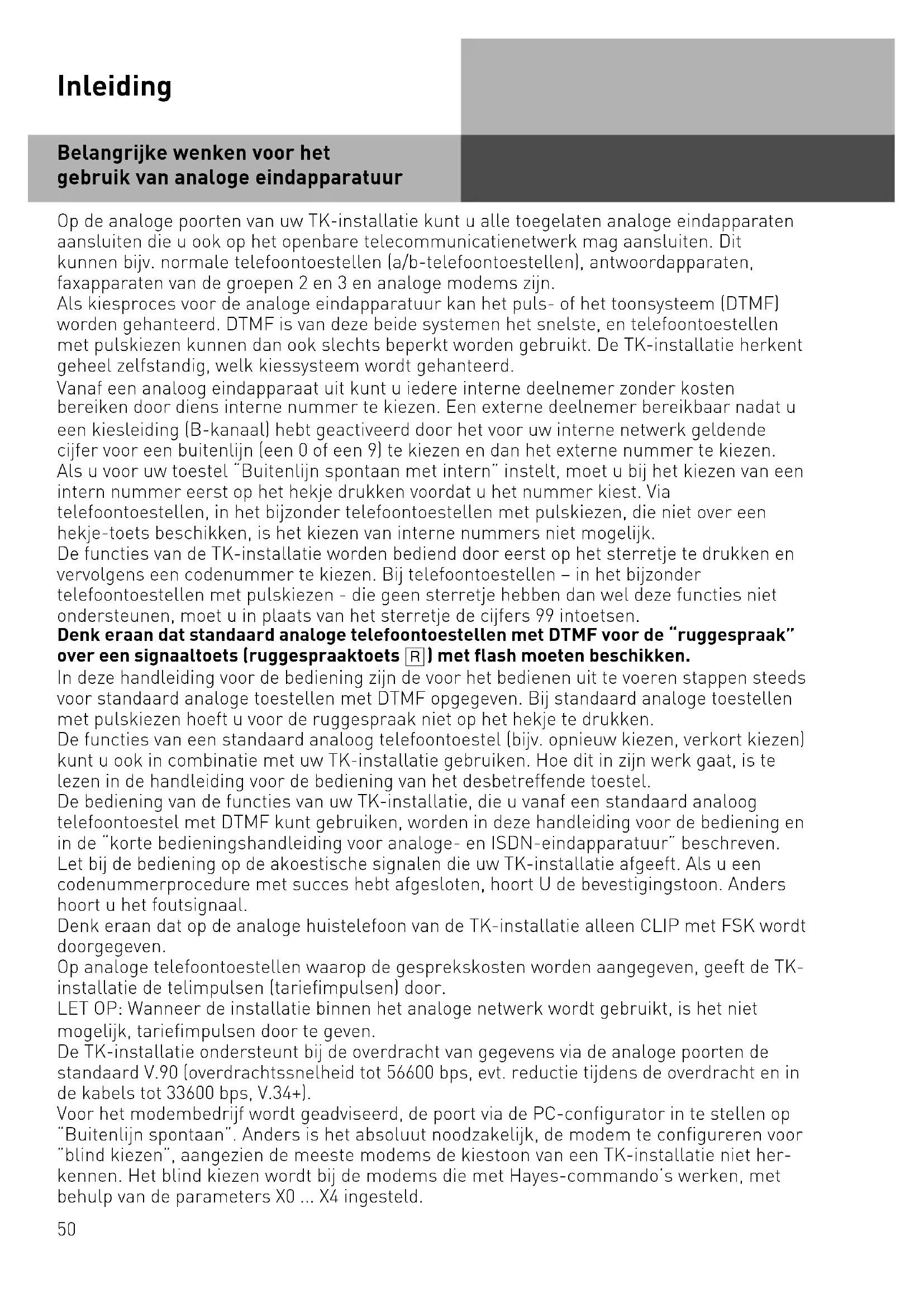 Belangrijke wenken voor het gebruik van analoge eindapparatuur 50