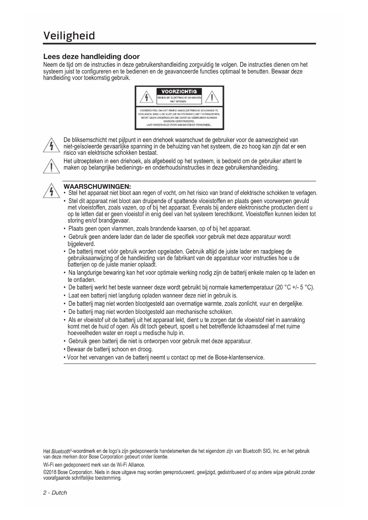 ©2018 Bose Corporation. Niets in deze uitgave mag worden gereprodued, gewijzigd, gedistribuerd of op andere wijze gebrukt zonder voorafgaande schriftelijke toestemming.