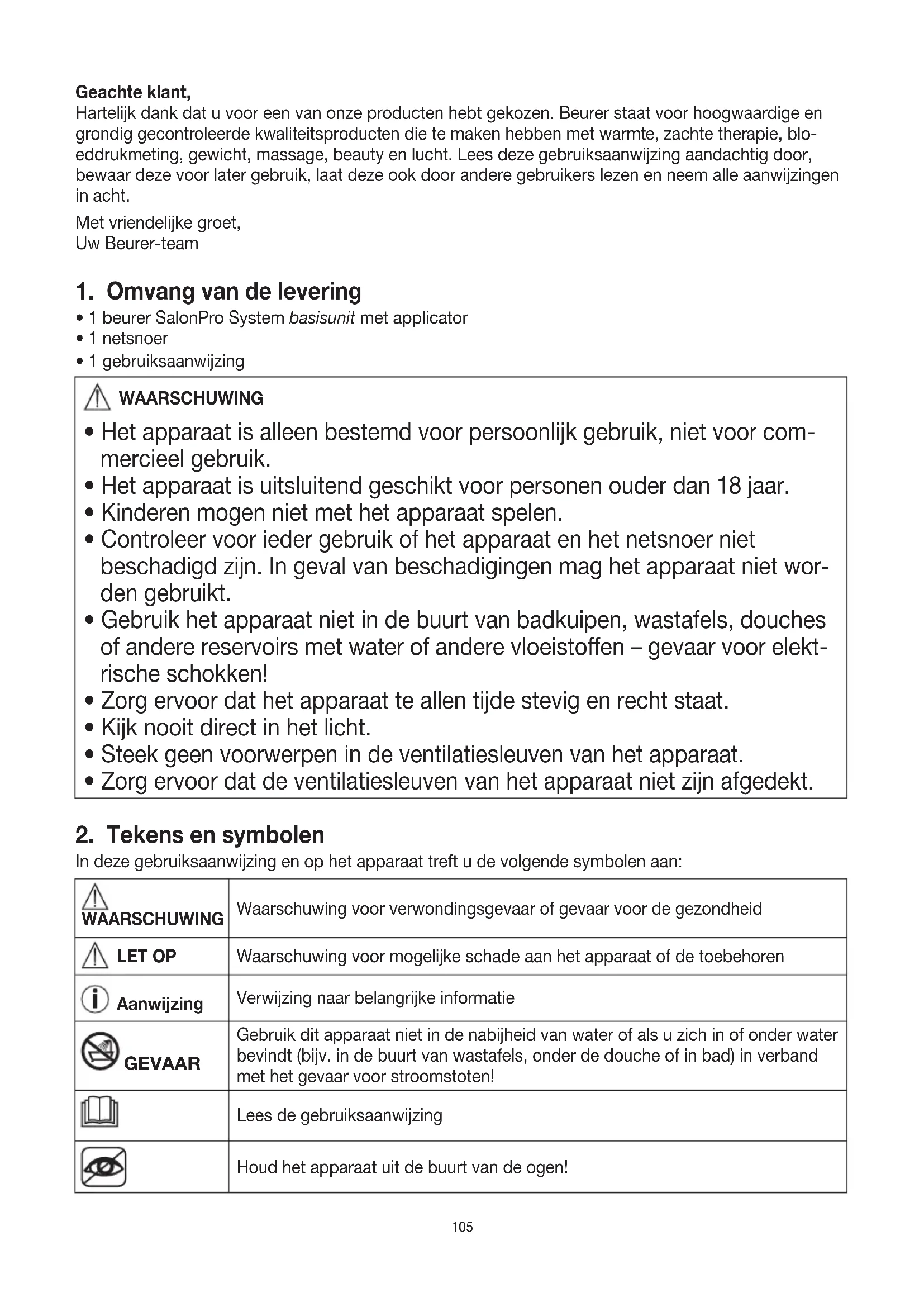- Gebruik het beurer SalonPro System uitsluitend voor het doel waarvoor het bestemd is en op de in de gebruiksaanwijzing beschreven manier.