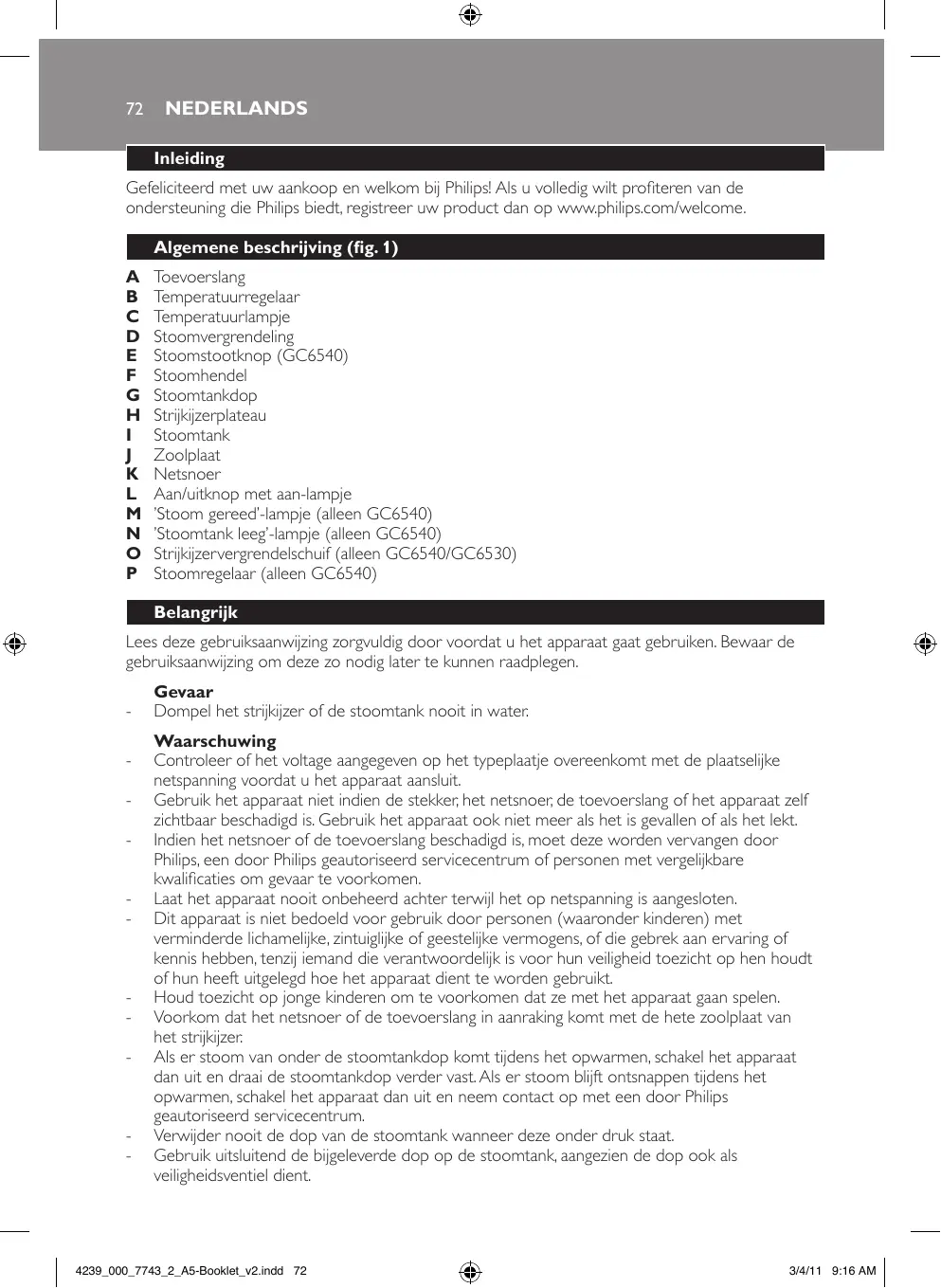 GC 6511 - Strijkijzer PHILIPS - Gratis gebruiksaanwijzing en handleiding