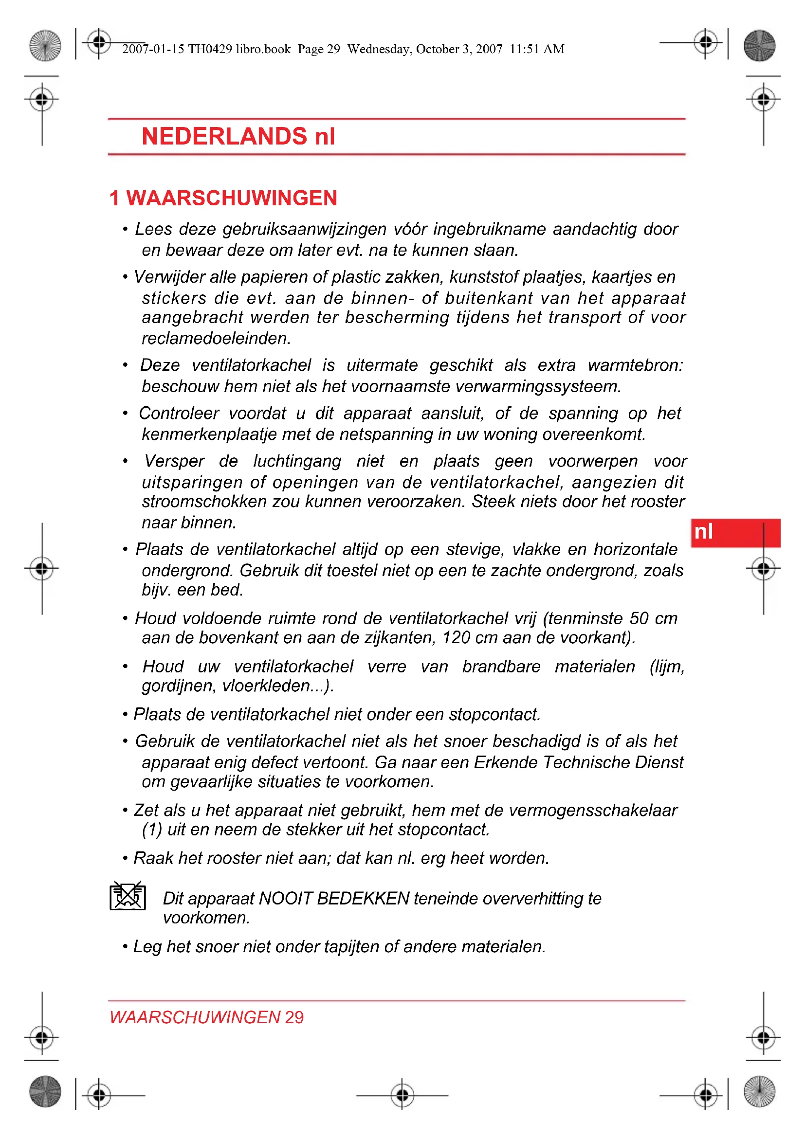 - Deze ventilatorkachel is uitermate geschikt als extra warmtebron: beschouw hem nicht als het voornaamste verwarmingssystem.