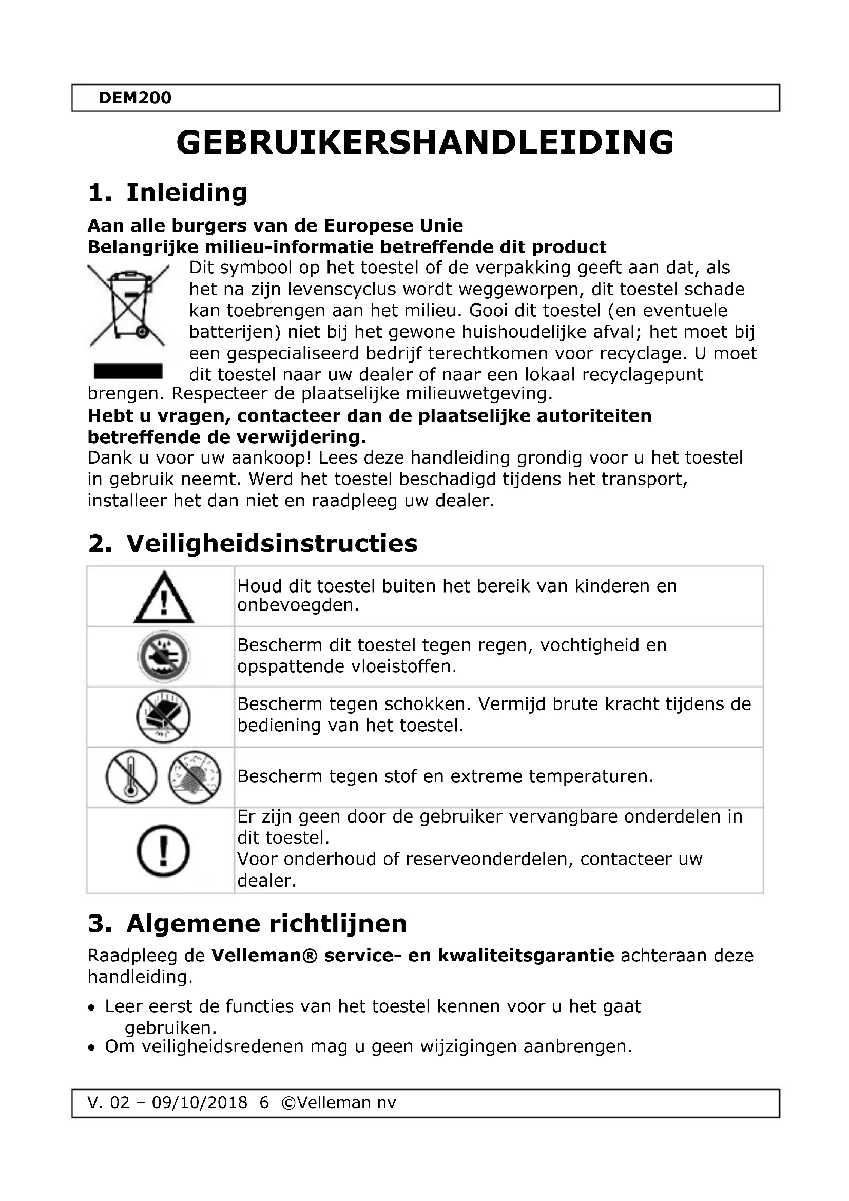 GEBRUIKSAANWIJZING DEM200 VELLEMAN