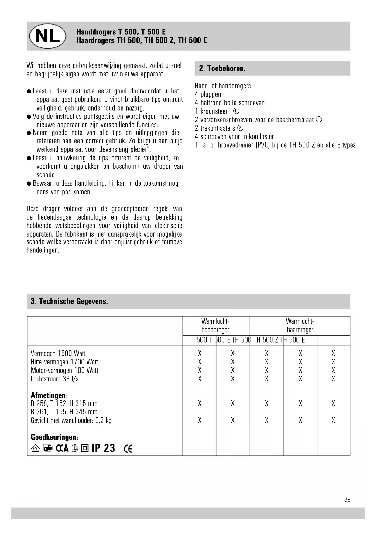 T 500 - Handdroger Starmix - Gratis gebruiksaanwijzing en handleiding