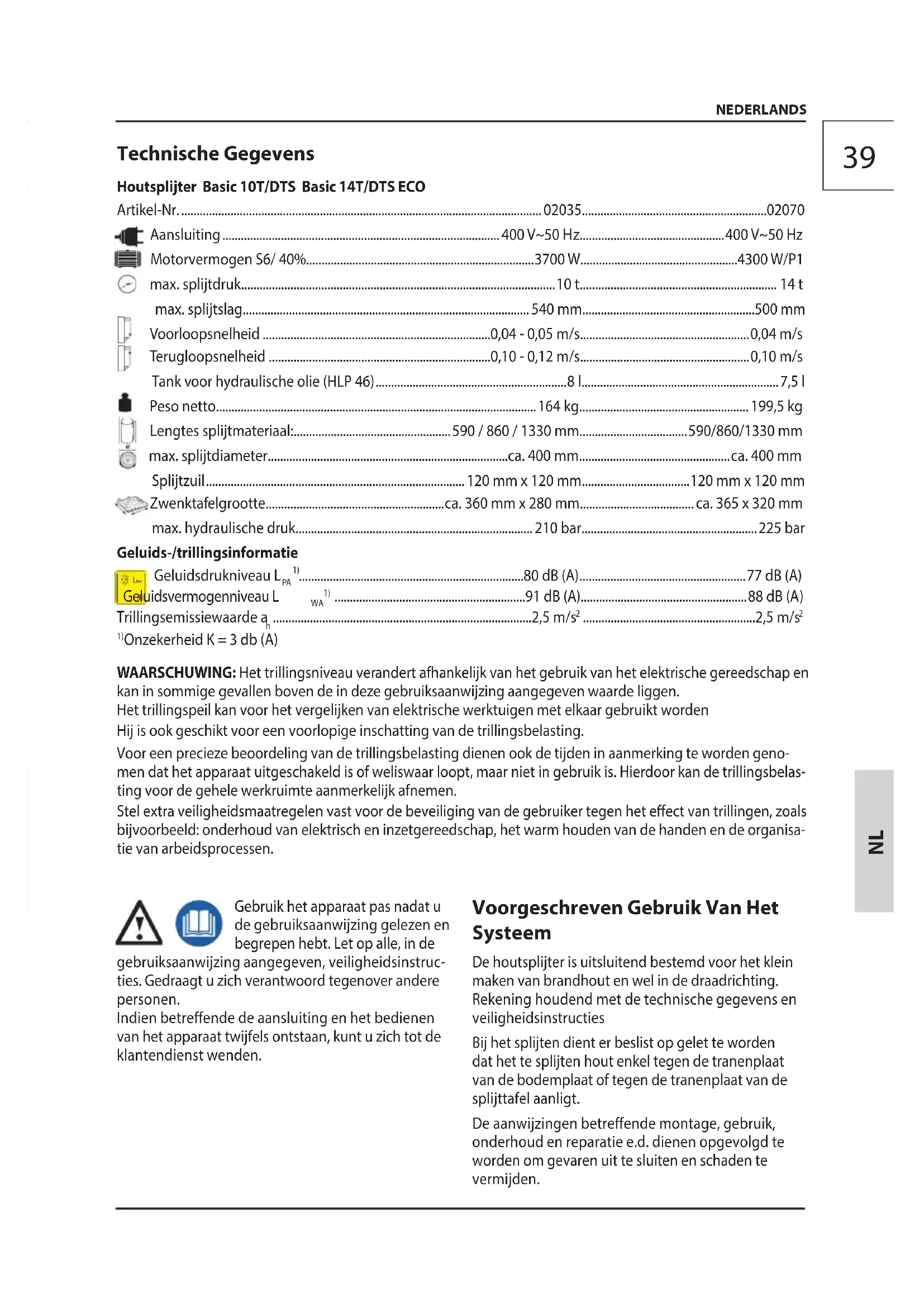 De houtsplijter is uitsluitend bestemd voor het Klein makes van brandhout en wel in de draadrichting. Rekening houdend met de technische gegevens en veiligheidsinstrumenties
