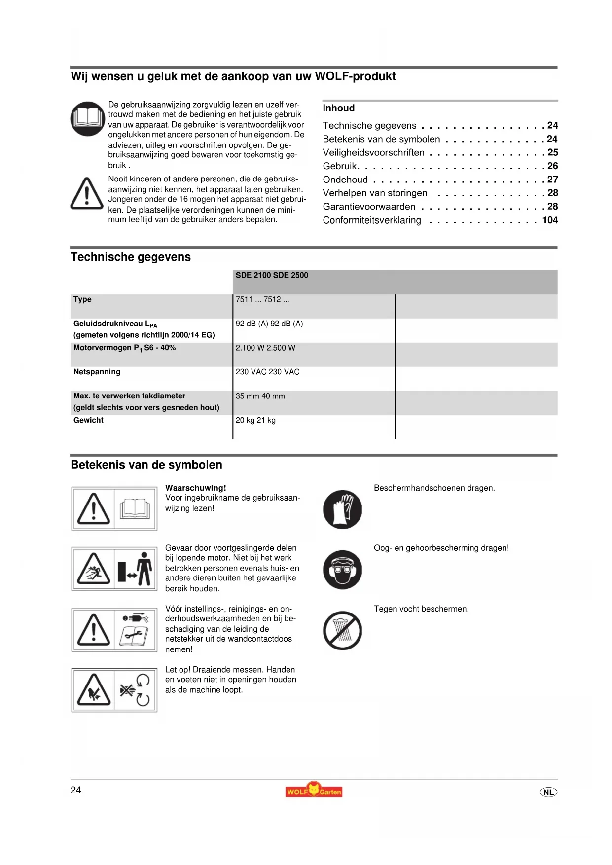GEBRUIKSAANWIJZING SDE 2100 Wolf Garten