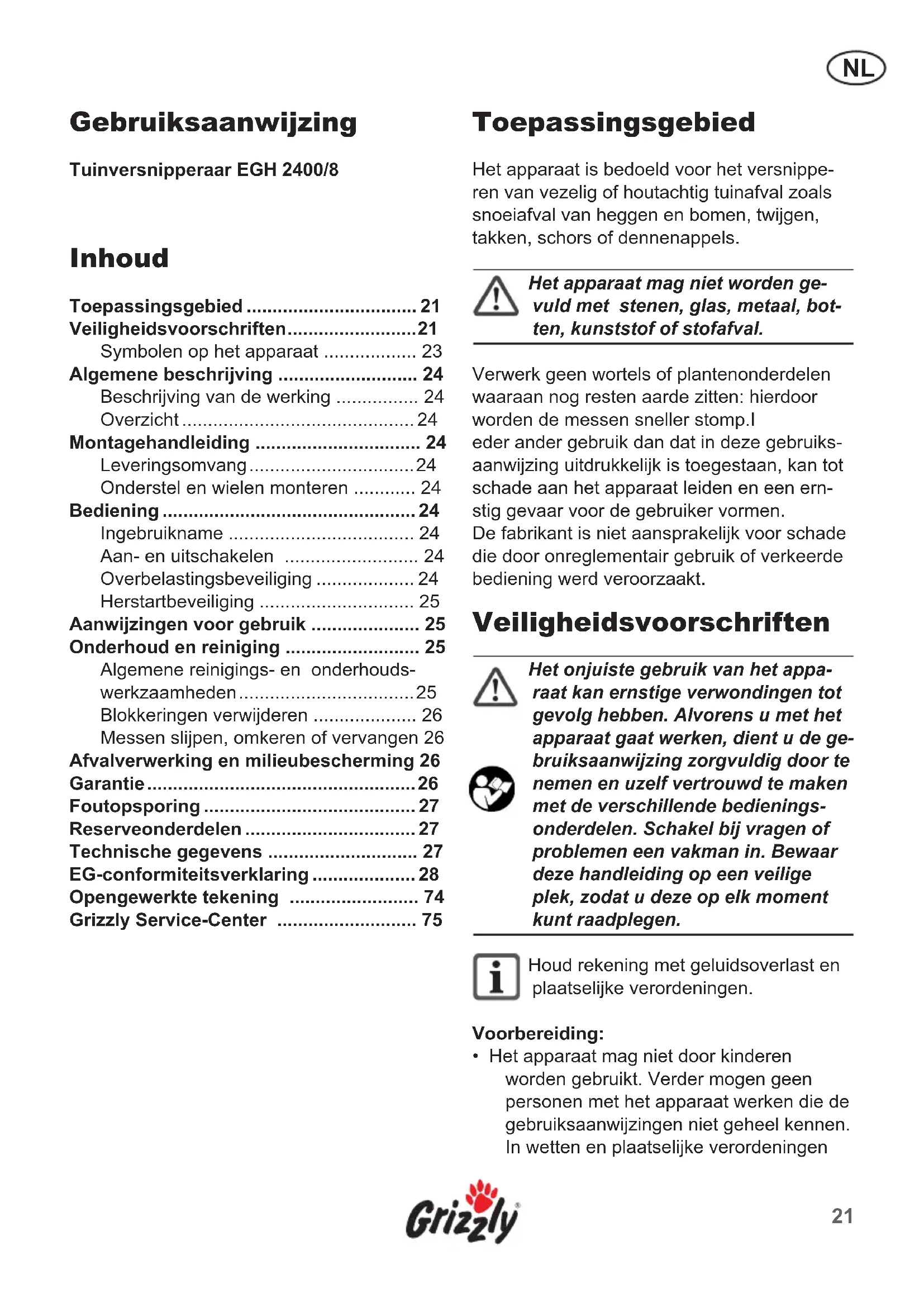 GEBRUIKSAANWIJZING EGH 24008 Grizzly