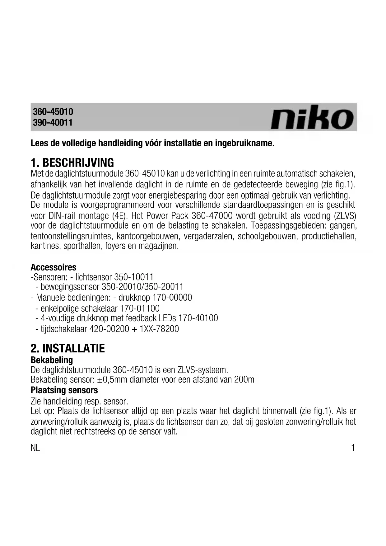 Vind de handleiding van het apparaat gratis 36045010 Niko in PDF-formaat.