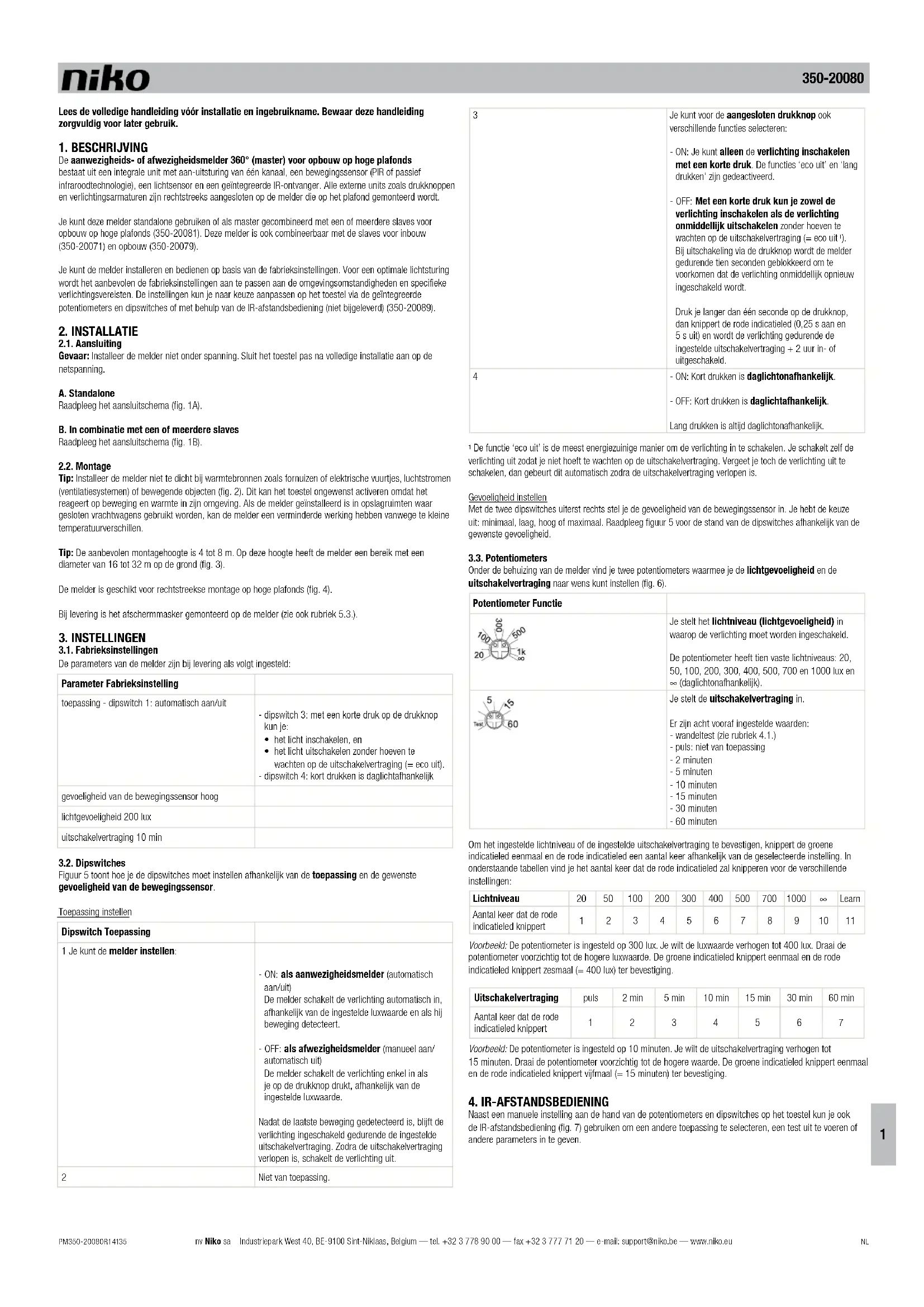 Vind de handleiding van het apparaat gratis 35020080 Niko in PDF-formaat.