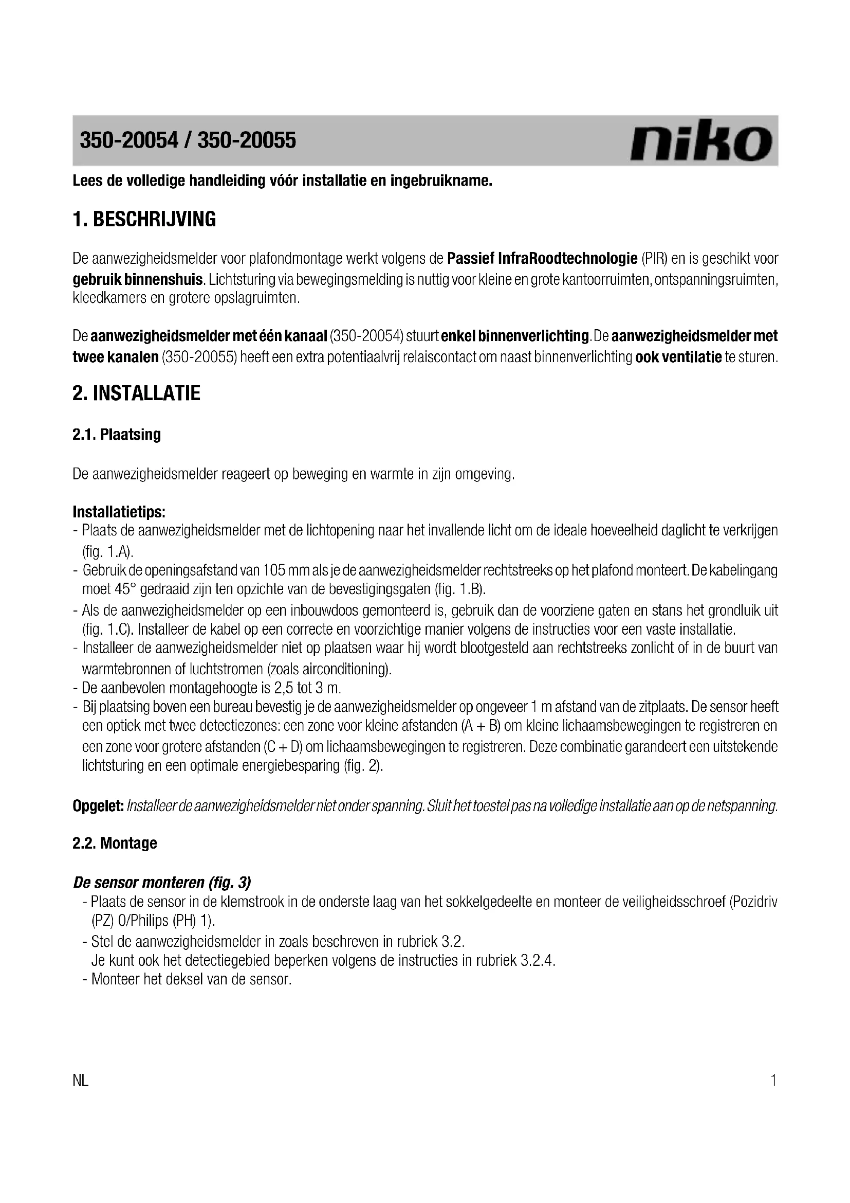 Vind de handleiding van het apparaat gratis 35020055 Niko in PDF-formaat.
