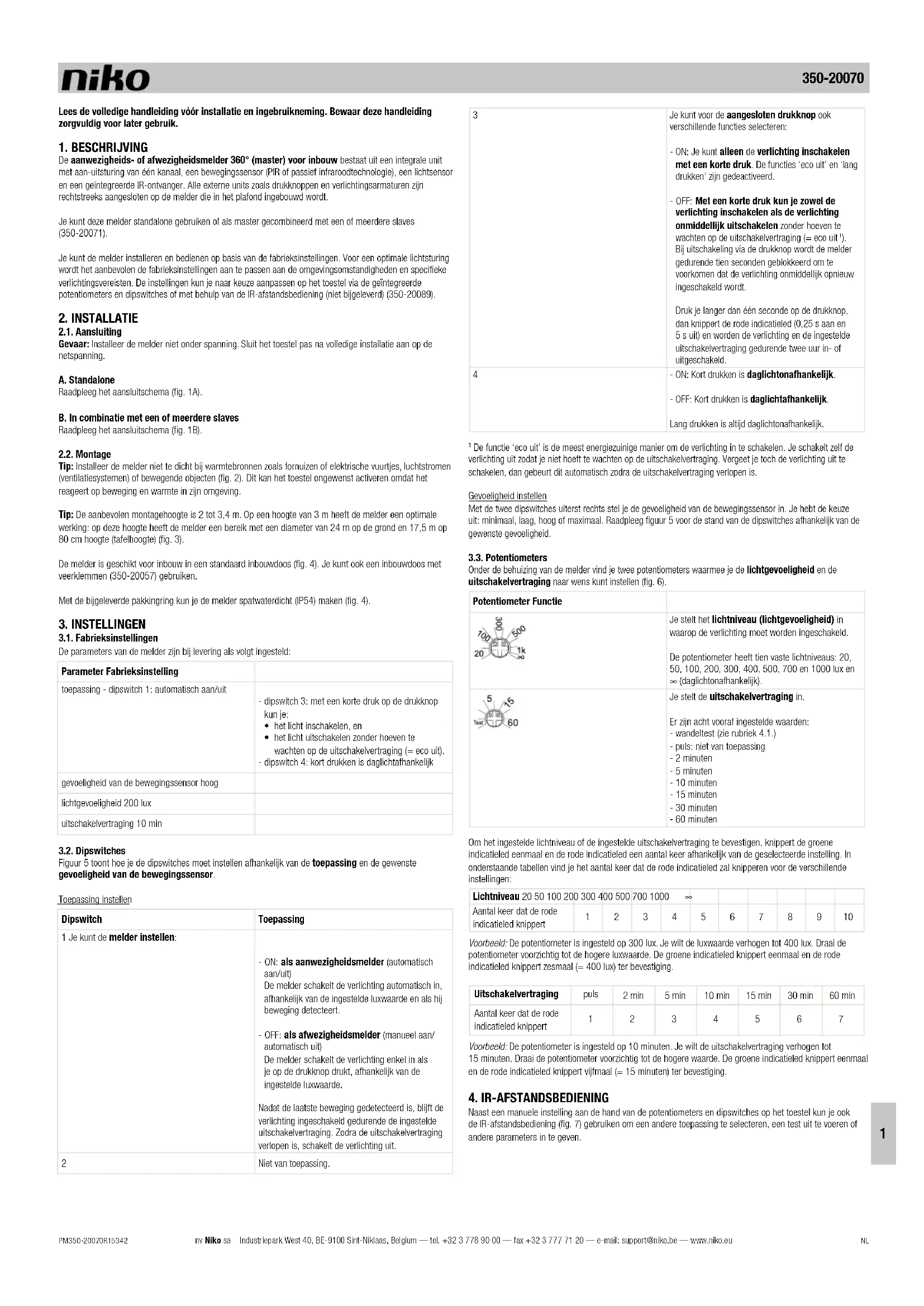 Vind de handleiding van het apparaat gratis 35020070 Niko in PDF-formaat.