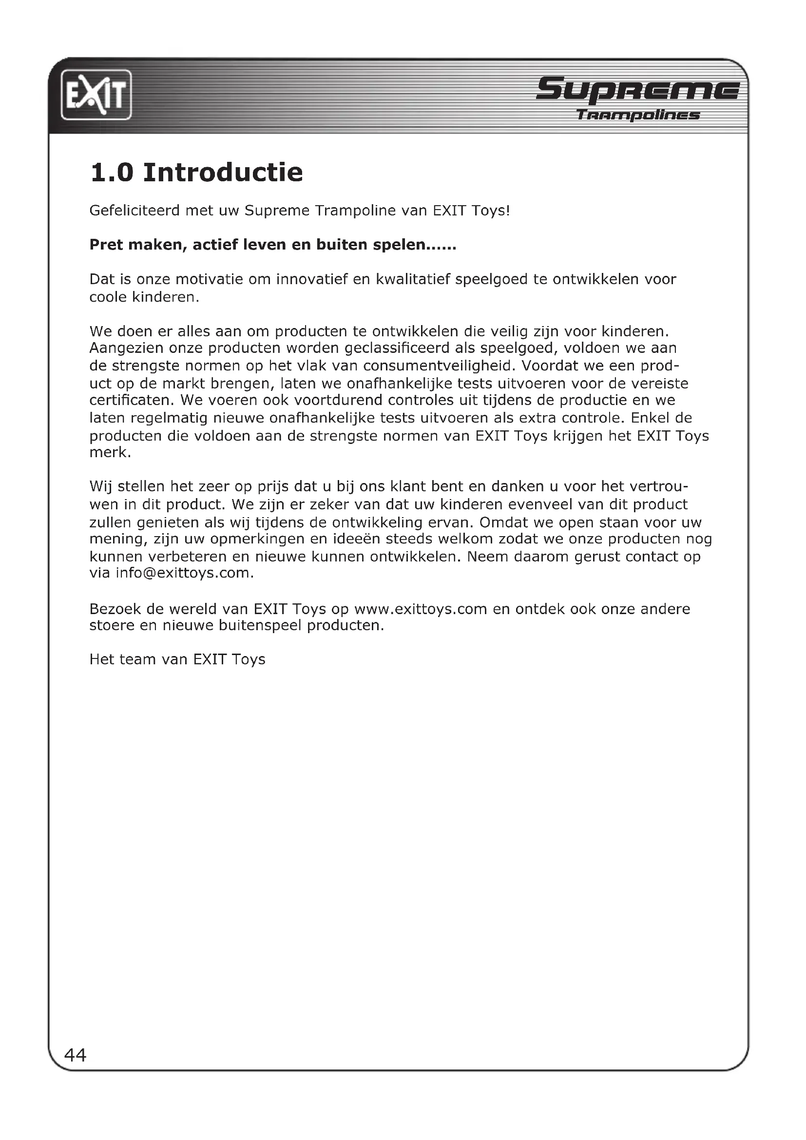 Gefeliciteerd met uw Supreme Trampoline van EXIT Toys!