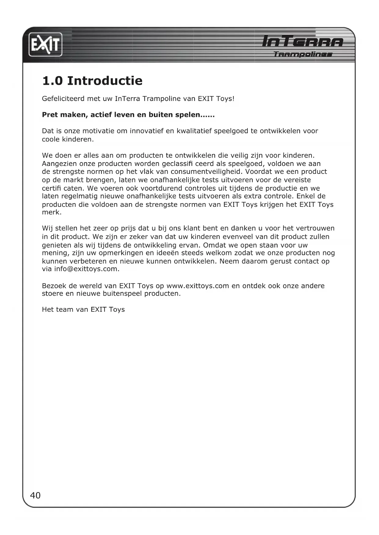 Gefeliciteerd met uw InTerra Trampoline van EXIT Toys!