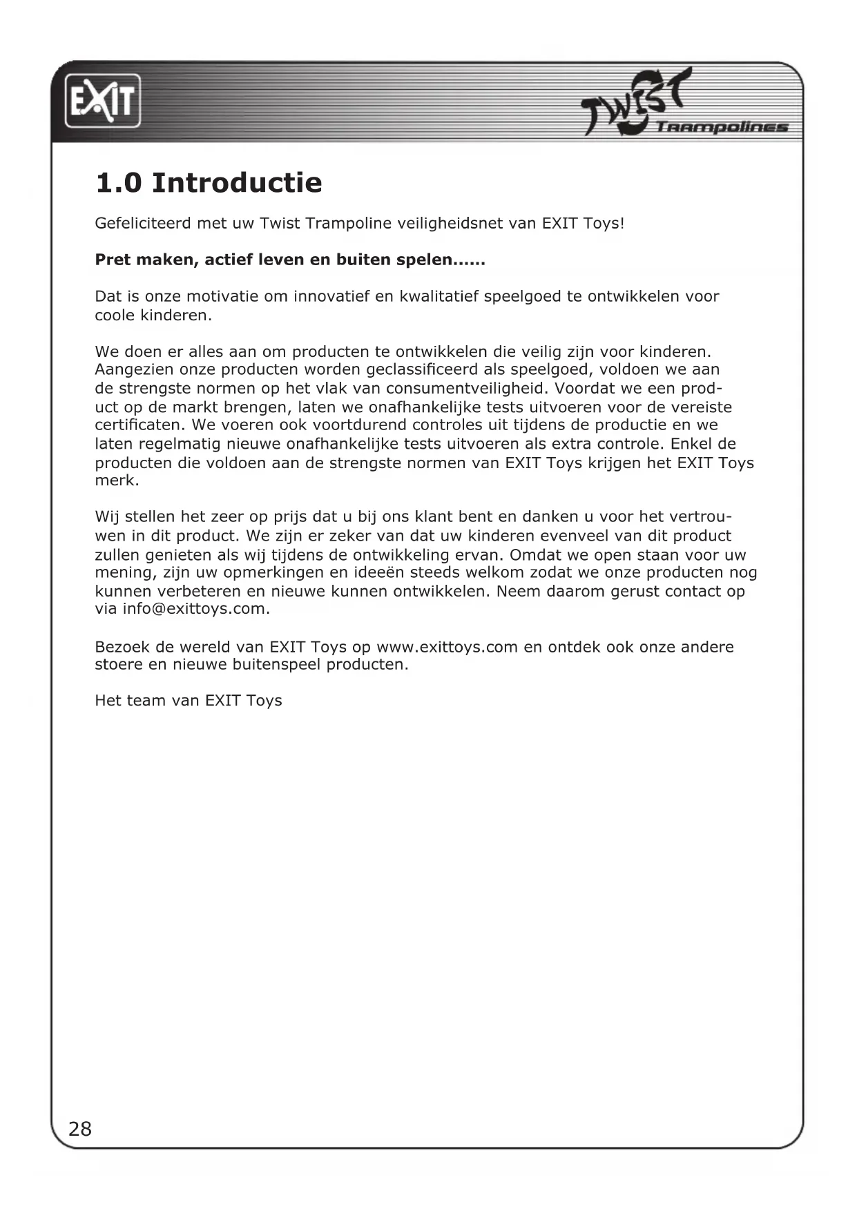 Gefeliciteerd met uw Twist Trampoline veiligheidsnet van EXIT Toys!
