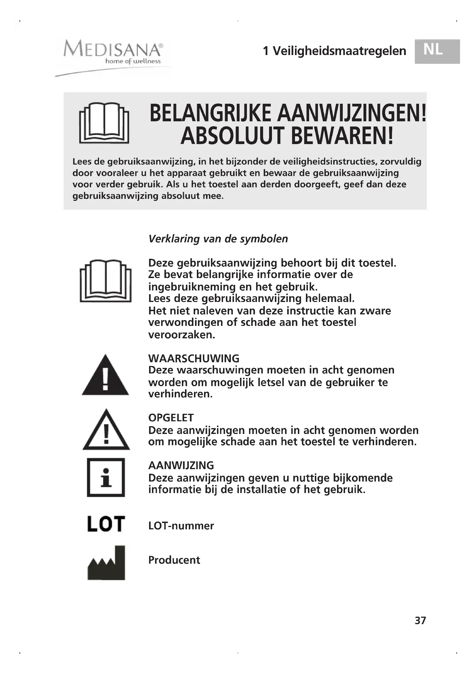 Lees de gebruiksaanwijzing, in het bijzonder de veiligheidsinstructies, zorvuldig door vooraleer u het apparaat gebruikt en bewaar de gebruiksaanwijzing voor verder gebruik. Als u het toestel aan derden doorgeeft, geef dan deze gebruiksaanwijzing absoluut mee.