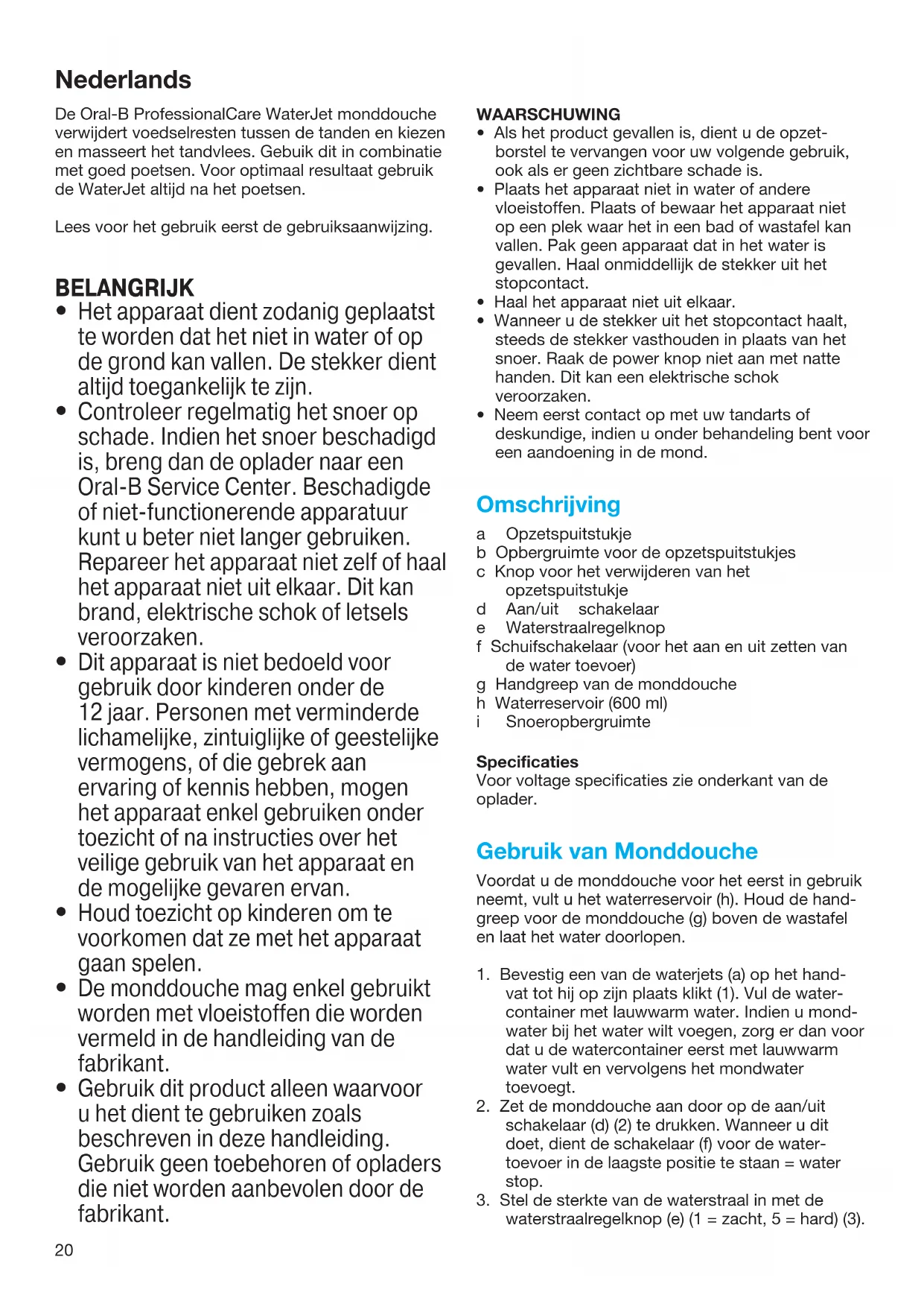 GEBRUIKSAANWIJZING Professional Care WaterJet BRAUN