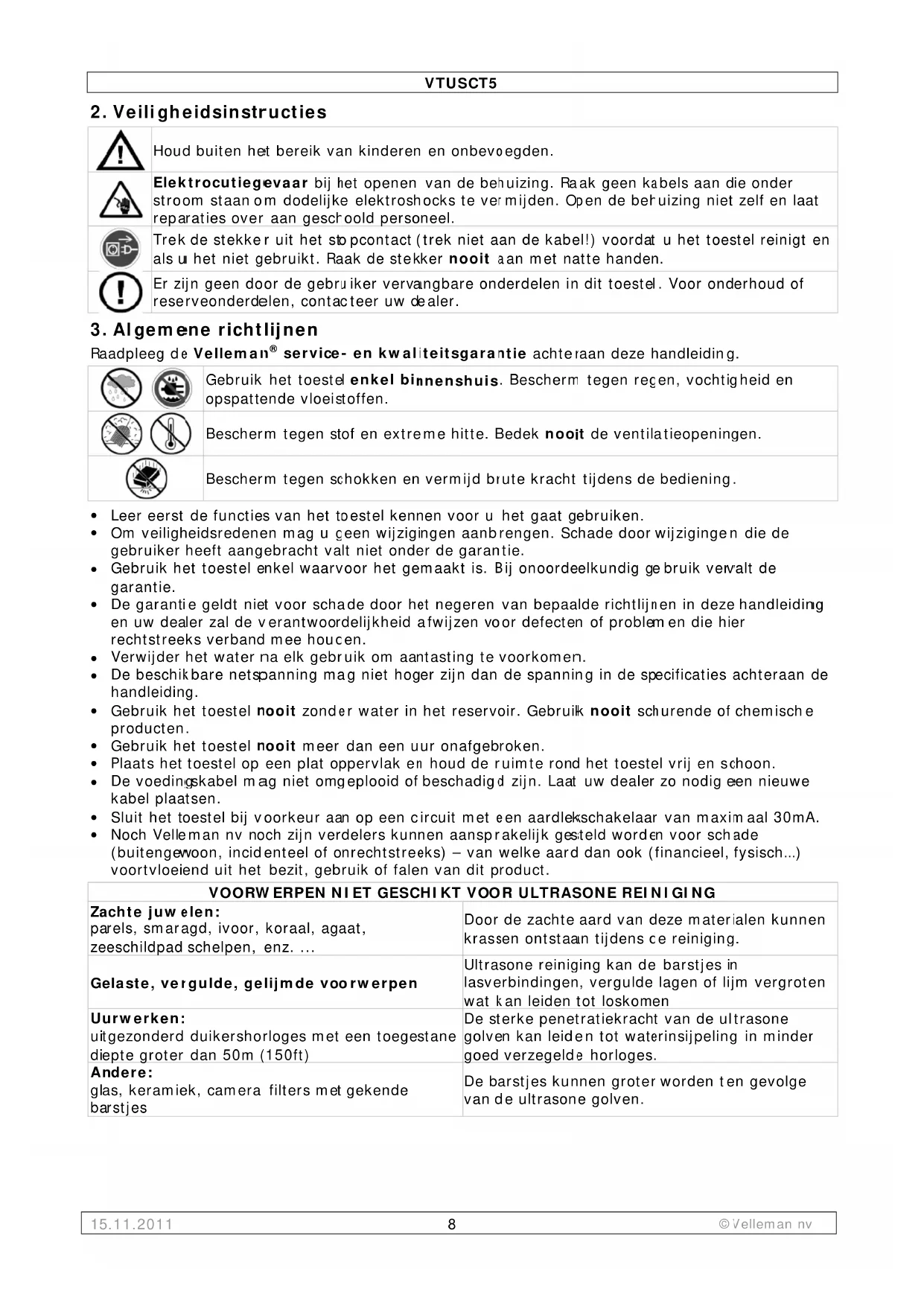 VTUSCT5 - Ultrasoonreiniger VELLEMAN - Gratis gebruiksaanwijzing en handleiding