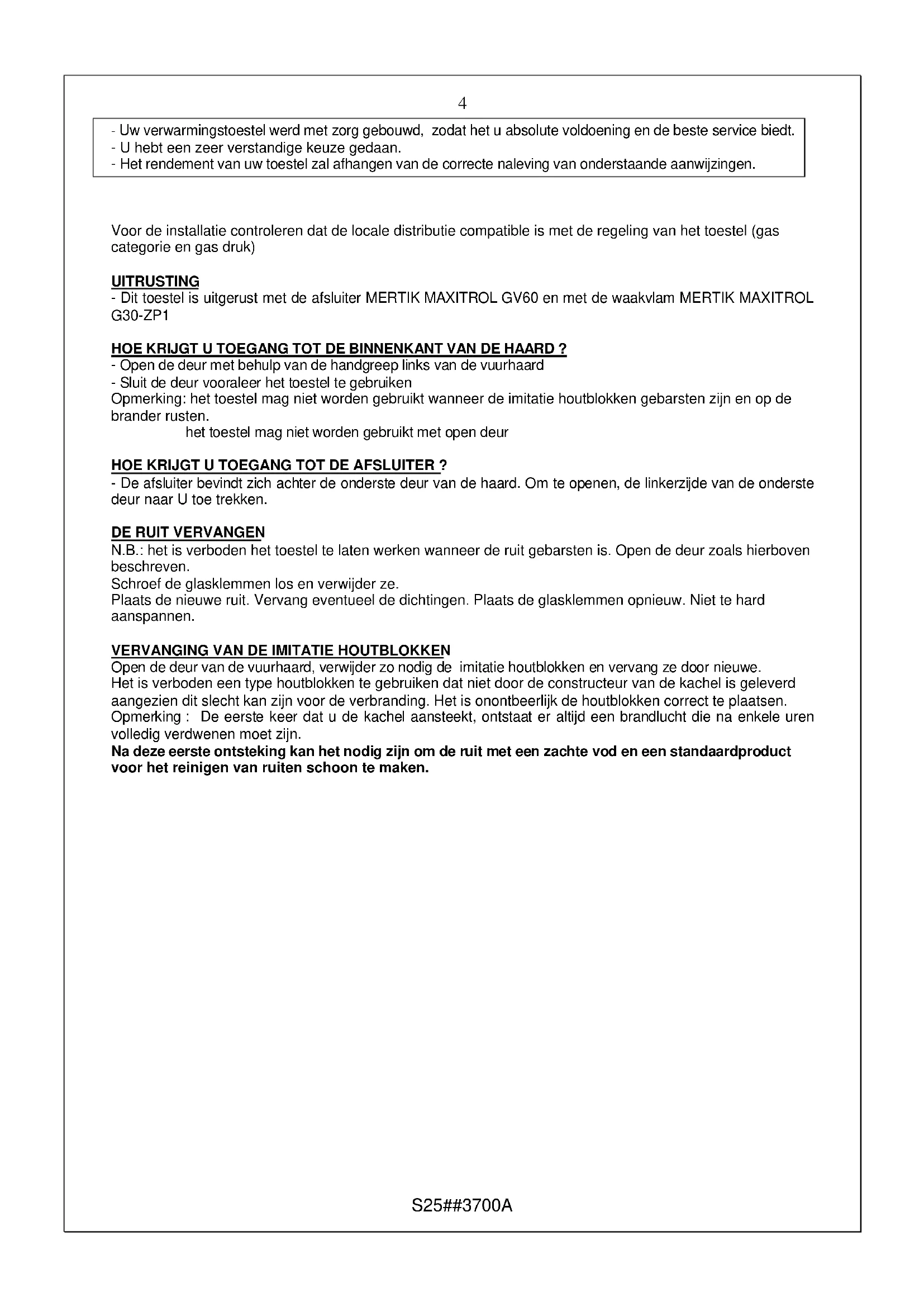 - Dit toestel is uitgerust met de afsluiter MERTIK MAXITROL GV60 en met de waakvlam MERTIK MAXITROL G30-ZP1