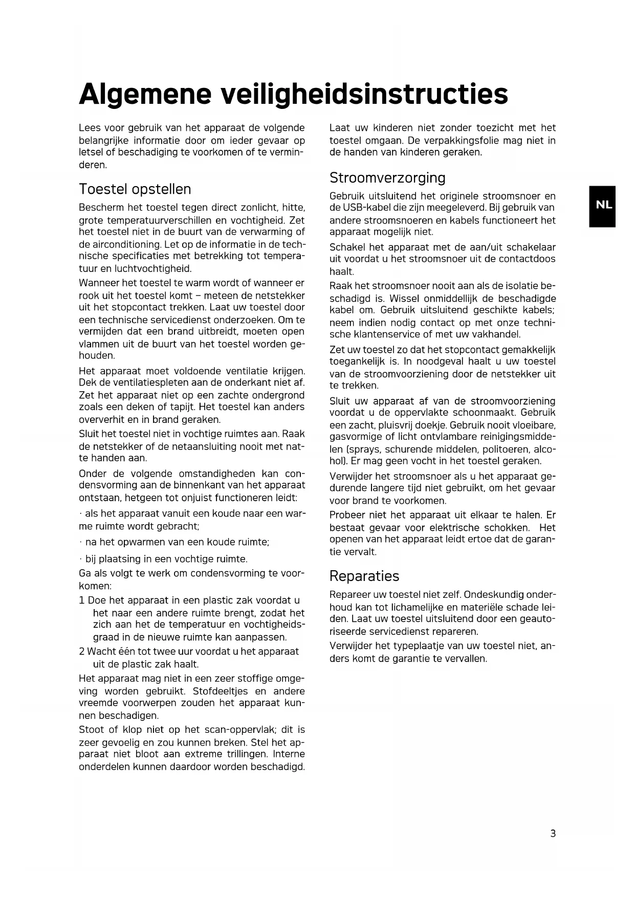 Stoot of klop niet op het scan-oppervlak; dit is zeer gevoelig en zou kunnen breken. Stel het apparaat niet bloot aan extreme trillingen. Interne onderdelen kunnen daardoor worden beschadigd.