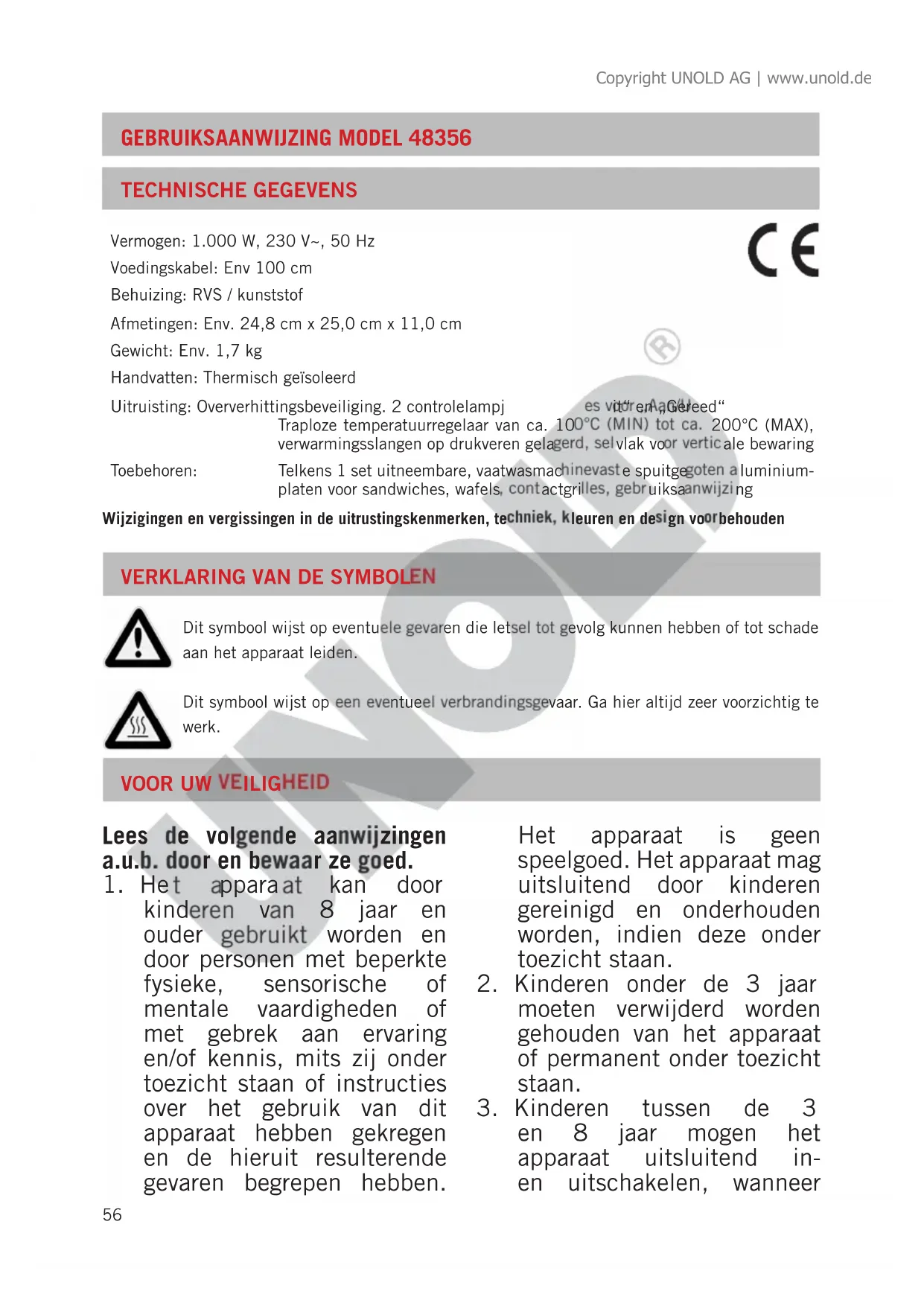GEBRUIKSAANWIJZING 48356 UNOLD