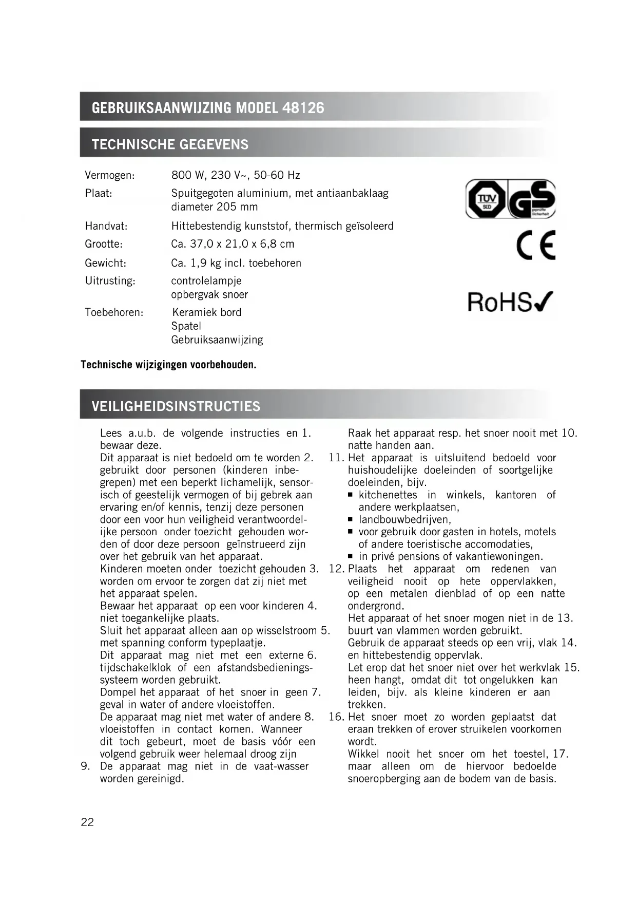 GEBRUIKSAANWIJZING 48126 UNOLD