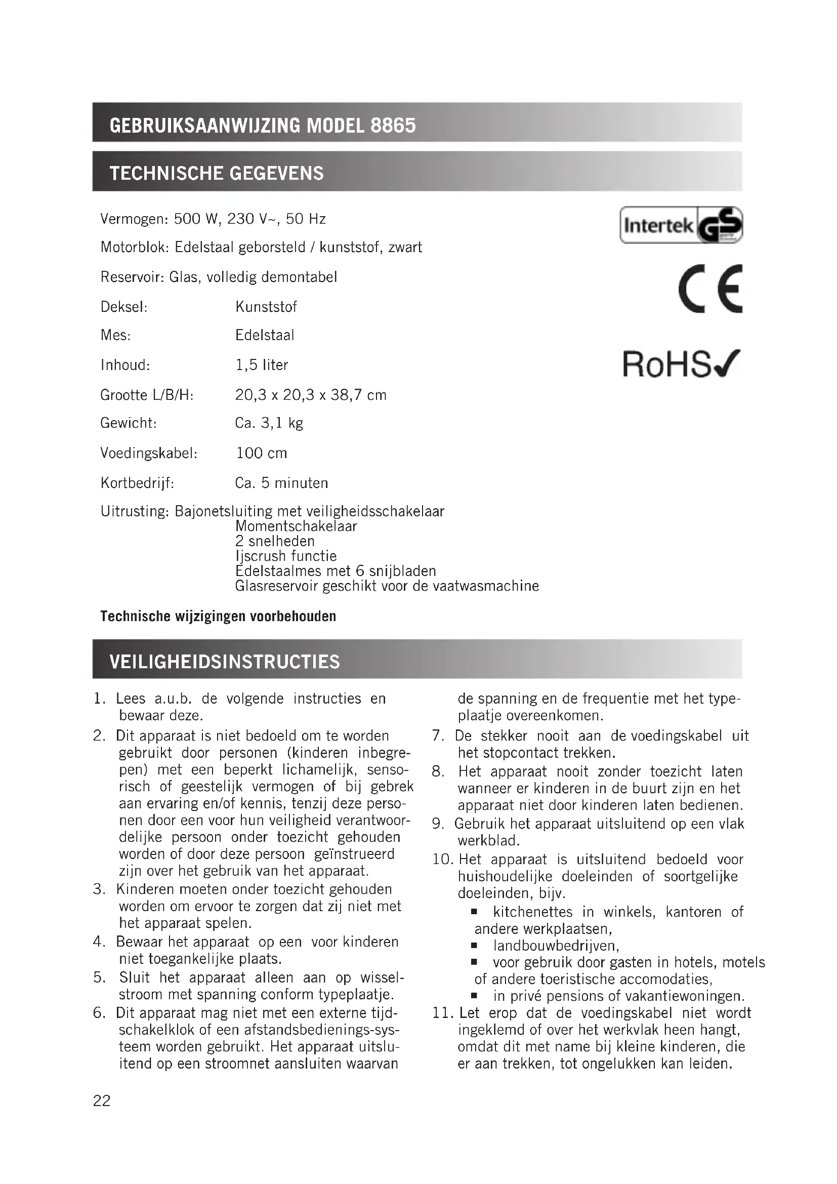 GEBRUIKSAANWIJZING 8865 UNOLD