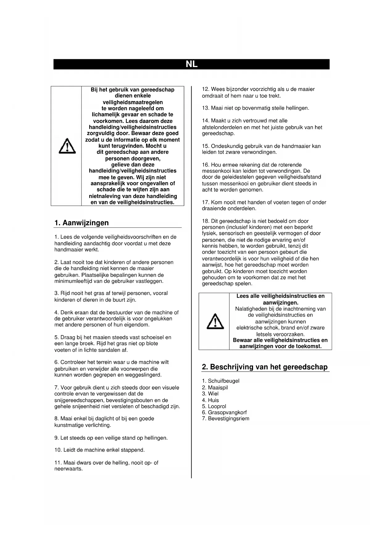 Let op! Wegens gevaar voor Ilichamelijk letsel van de gebruiker mag de handmaier Niet worden gebruikt om rankgewassen of gazon te maaien op dakbeplantingen of in balkonbakken.