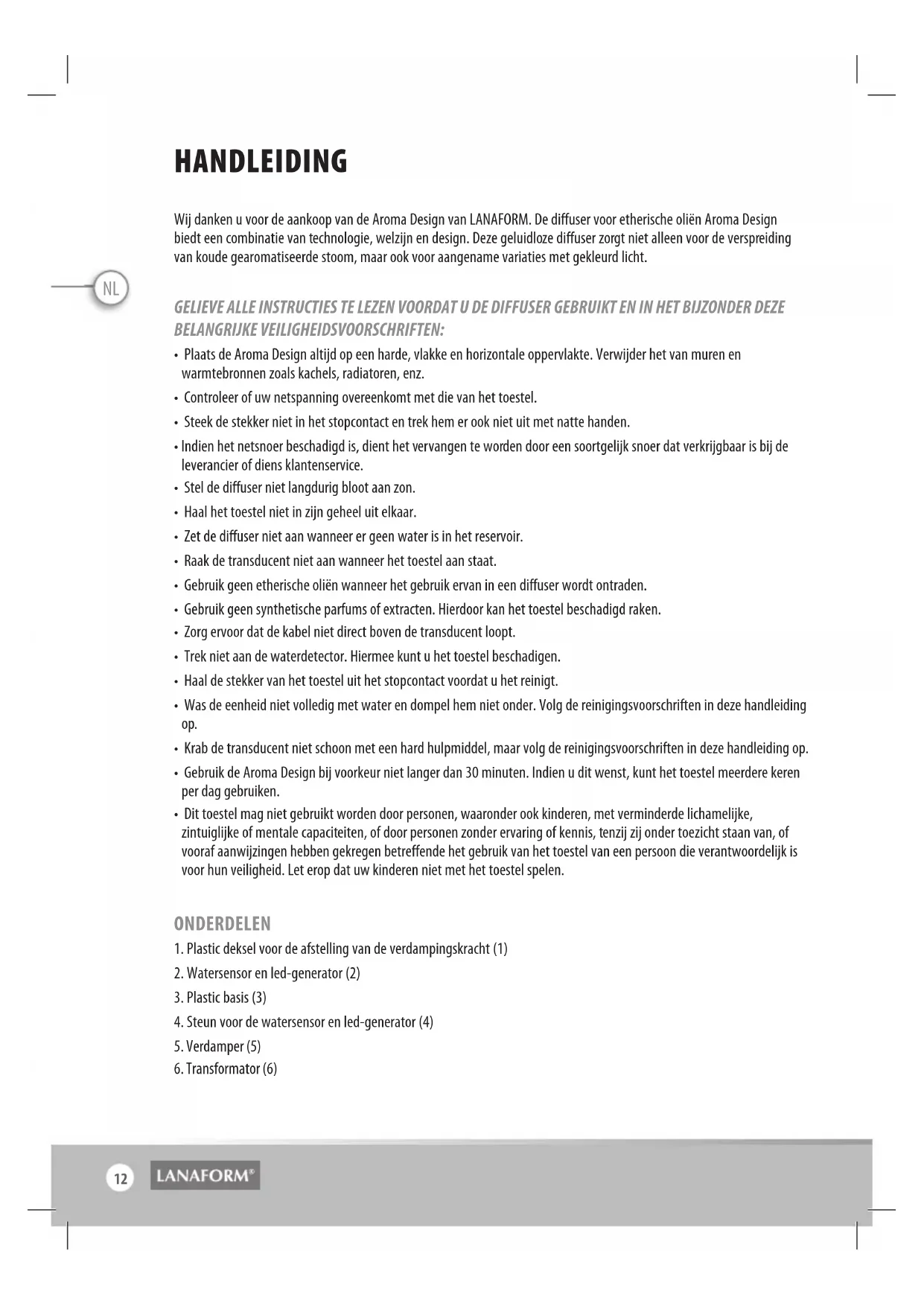 GEBRUIKSAANWIJZING Aroma Design LANAFORM