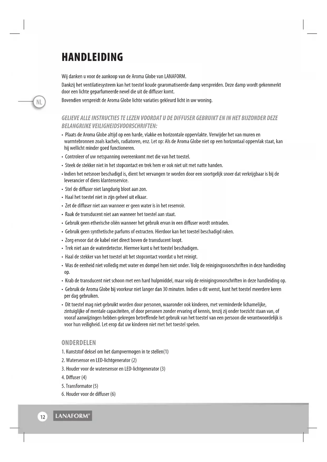 GEBRUIKSAANWIJZING Aroma Globe LANAFORM