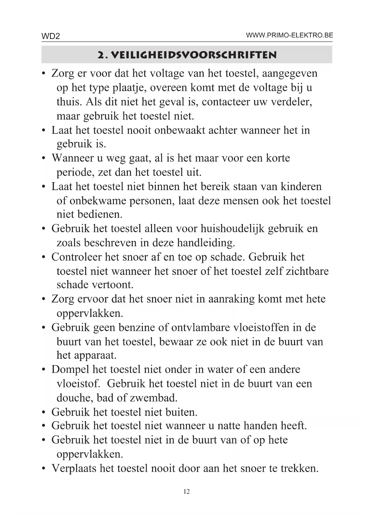 GEBRUIKSAANWIJZING WD2 PRIMO