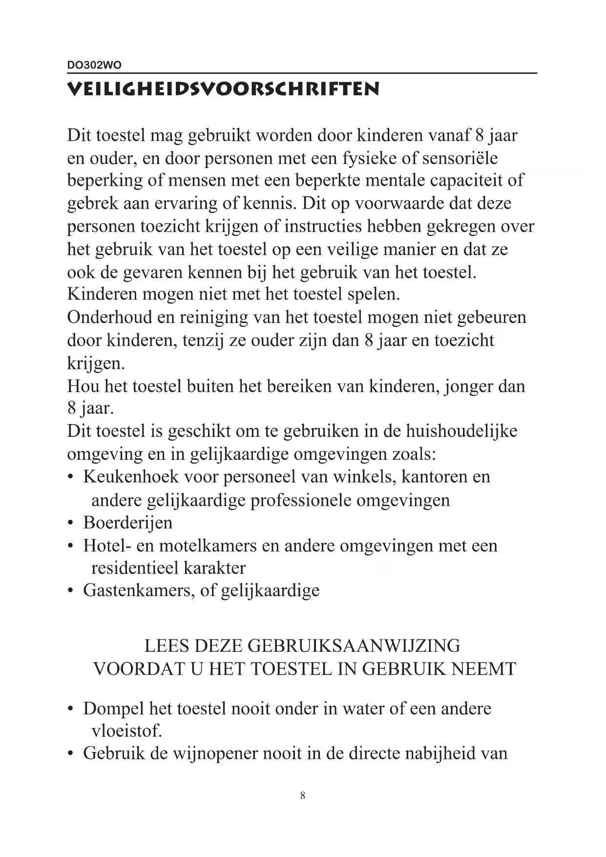 - Gebruik de wijnopener nooit in de directe nabijheid van