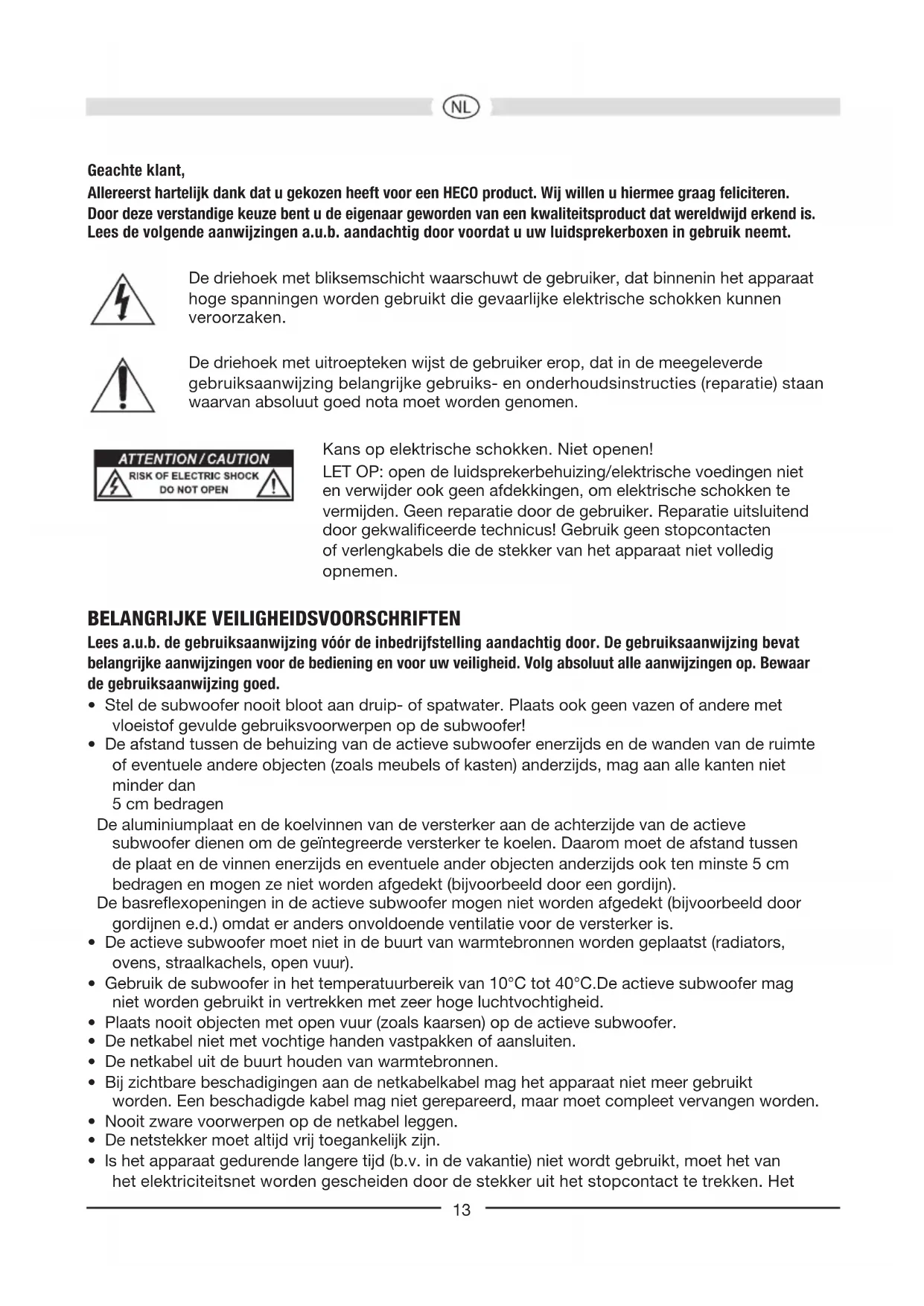 - Stel de subwoofer nooit bloot aan druip- of spatwater. Plaats ook geen vazen of andere met vloeistof gevulde gebruiksvoorwerpen op de subwoofer!