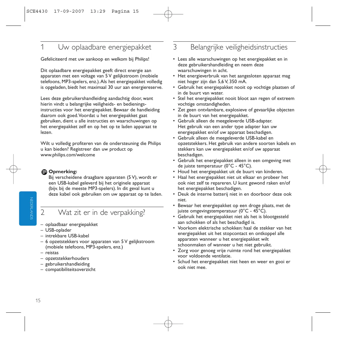 GEBRUIKSAANWIJZING SCE4430 PHILIPS