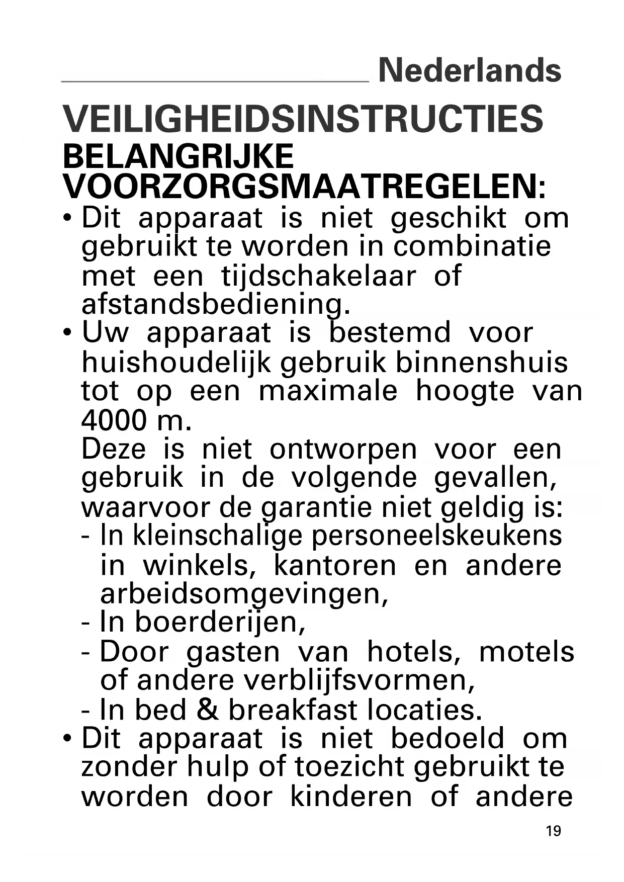 - Dit apparaat is niet bedoeld om zonder hulp of toezicht gebruikt te worden door kinderen of andere20 personen, indien hun fysieke, zintuiglijke of mentale vemogen hen niet in staat stellen dit apparaat op een veilige wijze te gebruiken, tenzij zij van tevoren instructies hebben ontvangen betreffende het gebruik van het apparaat door een verantwoordelijk persoon.