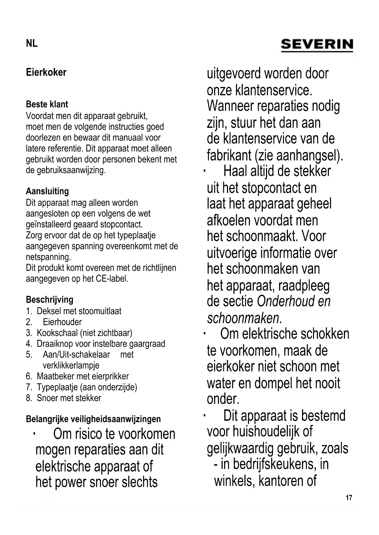 GEBRUIKSAANWIJZING EK 3134 SEVERIN