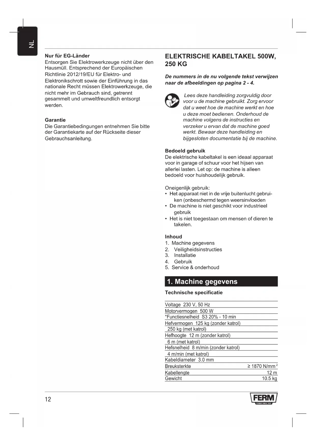 LHM1011 - Elektrische lier Ferm - Gratis gebruiksaanwijzing en handleiding