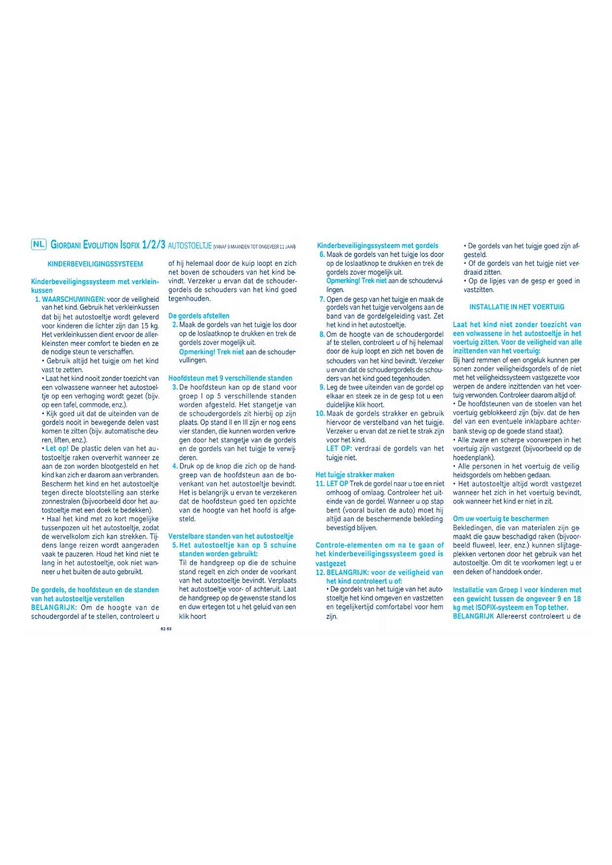 GEBRUIKSAANWIJZING Evolution 123 Isofix Giordani