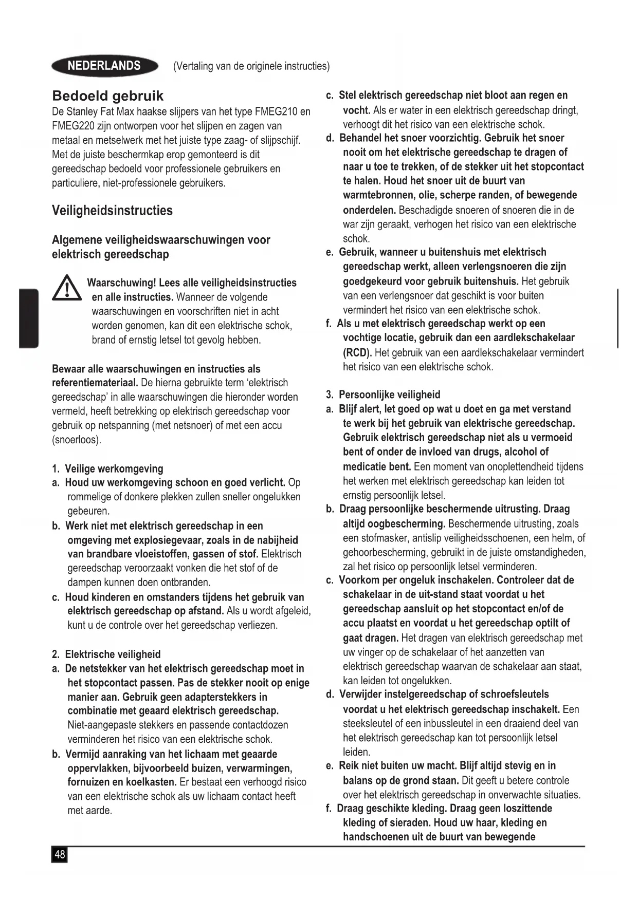 GEBRUIKSAANWIJZING FMEG210 STANLEY