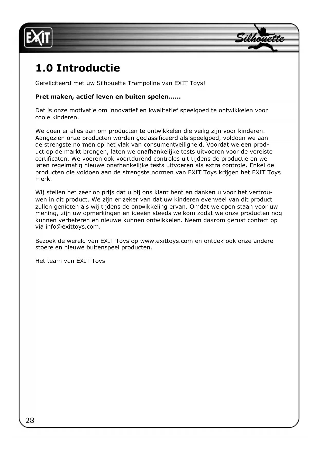 Gefeliciteerd met uw Silhouette Trampoline van EXIT Toys!