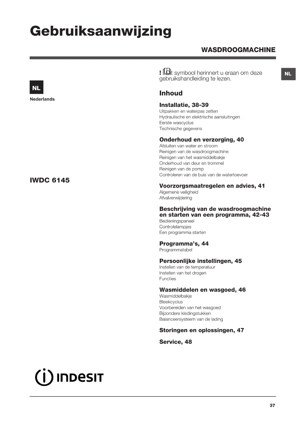 IWDC 6145 Gebruiksaanwijzing WASDROOGMACHINE38